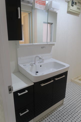洗面台(LIXIL製 オフト)キャビネットをプラスして収納力をアップしました