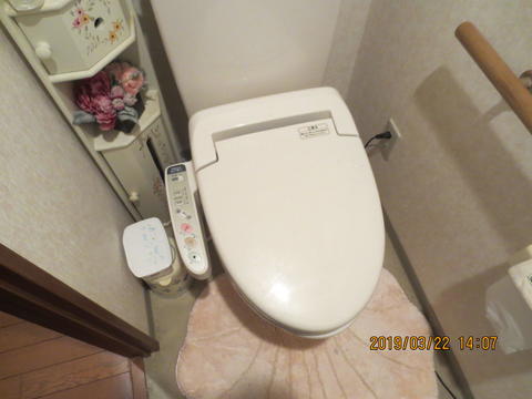 トイレをタンク付きの一体型に取り換え、換気扇を新品に交換