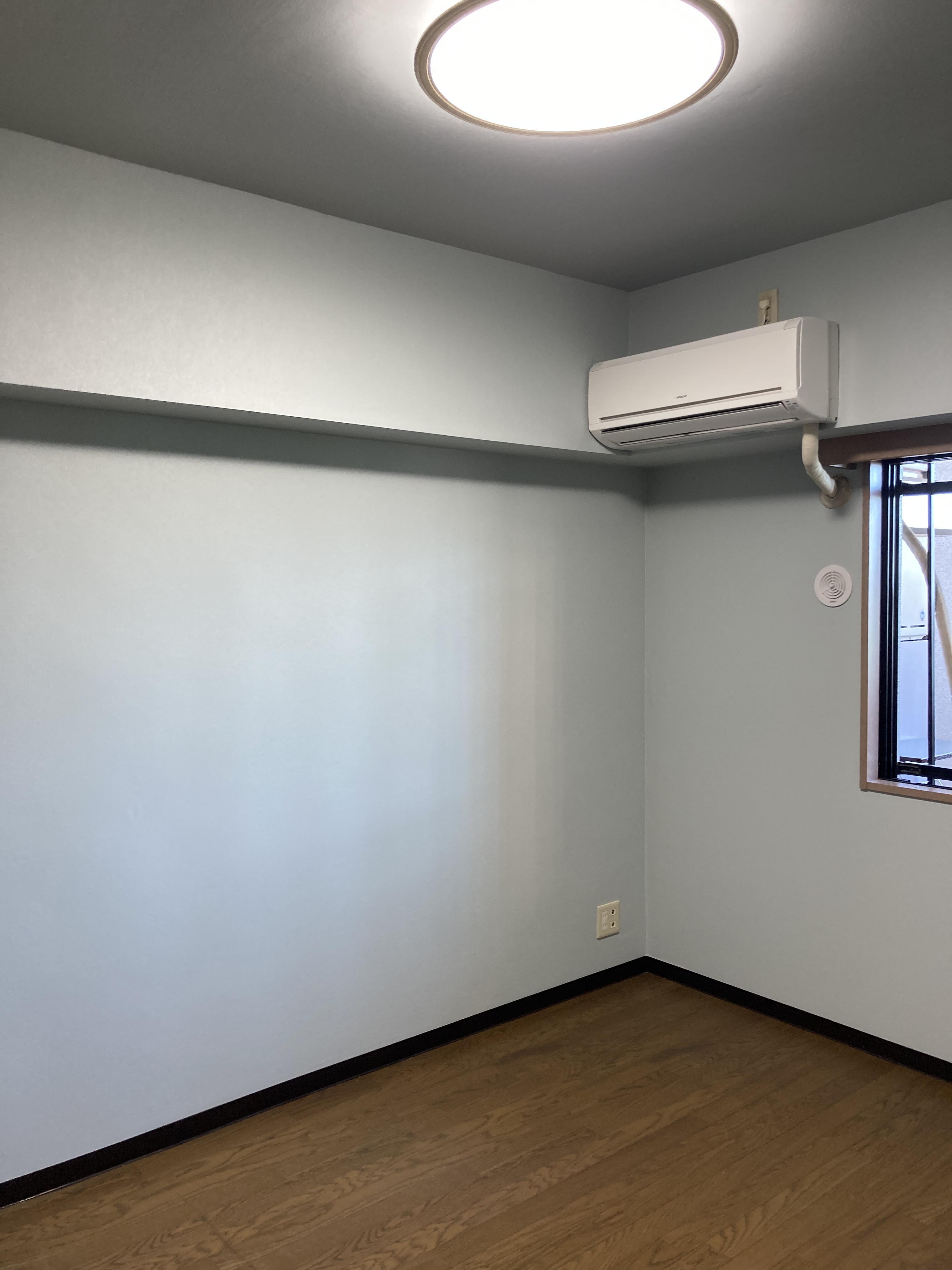 白い壁紙から淡い水色の壁紙にリフォームしました。 お部屋の面積を多く占める壁紙を交換するとお部屋の雰囲気も変わると思います。 廊下のクロスはホワイトベースにベージュが混じったお色で優しい雰囲気の印象になりました。