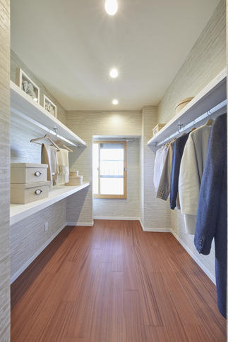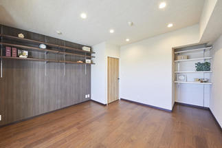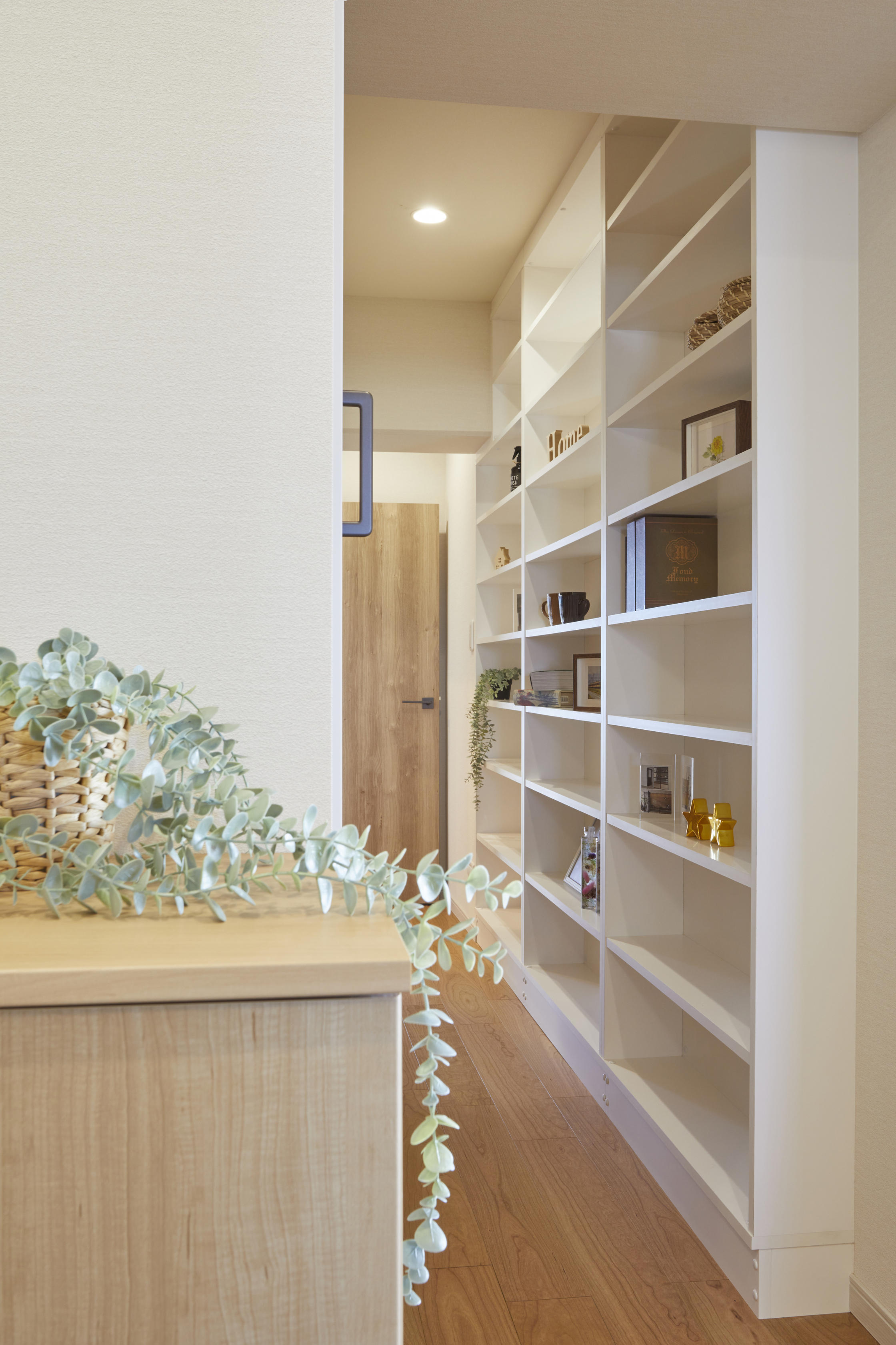 沢山の本を収納するスペースが欲しいというご要望に個々のお部屋はもちろん廊下の壁の厚みも利用して本棚を造作しました。またファミリークローゼットを設け家具を置かない生活をご提案。プライベートな個室を広々とお使い頂けます。