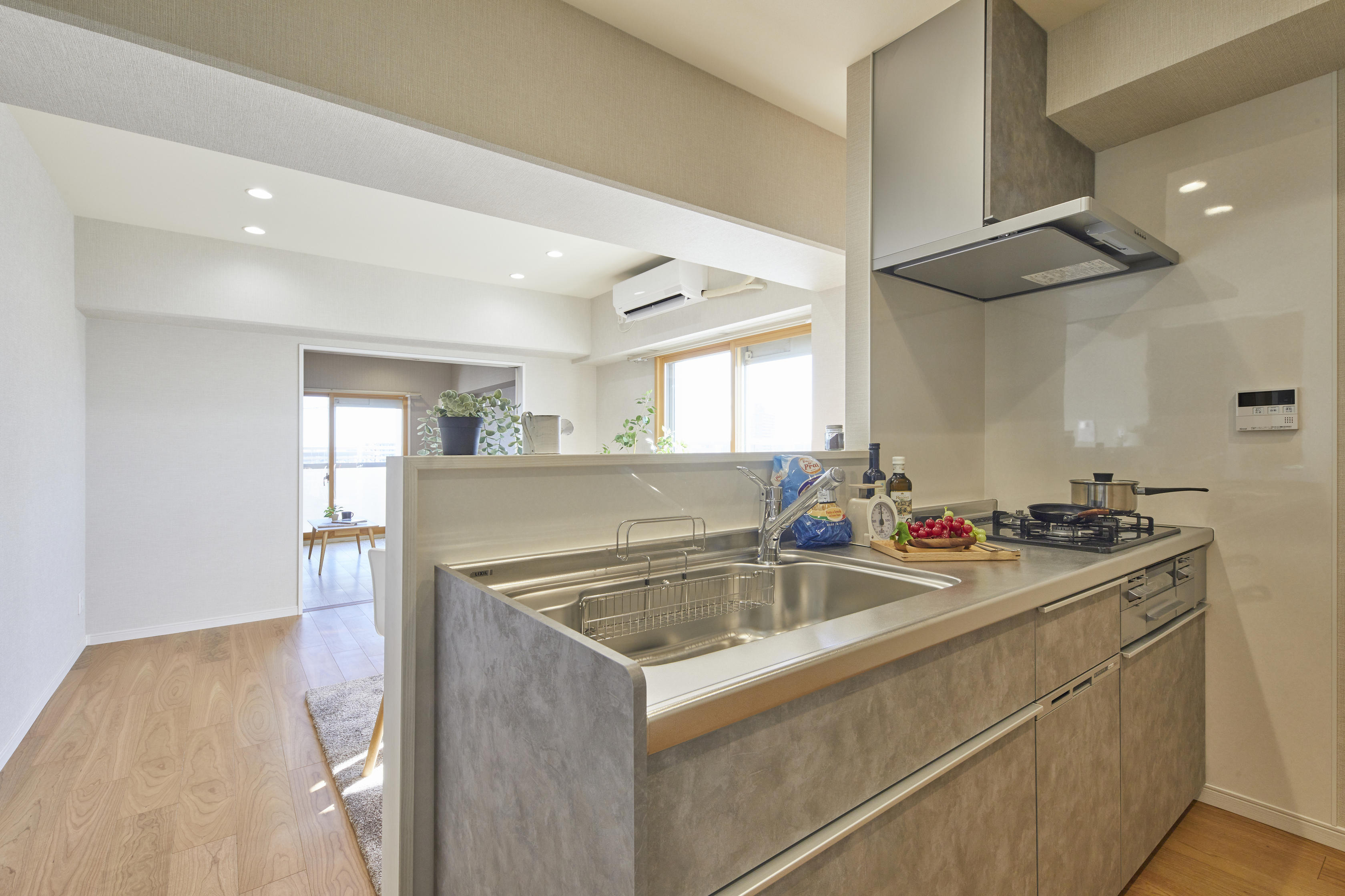 築38年3LDKのマンションのフルリノベーション。古くなった水まわり設備をはじめ、汚れが目立ちはじめた壁紙・床材・建具の交換希望でいらっしゃいました。すべて新しく取替つつ、住み慣れたお住まいを使いやすく、より快適に変身していきます。本をたくさんお持ちのお施主様のご希望でたっぷりと収納をご用意。ファミリークローゼットも設けて、整理整頓のしやすいプランをご提案。また各お部屋の素材の色使いにこだわり、お部屋を使う方の好みに合わせてフローリングと壁紙をセレクト。他にも各部屋に可動棚やマグネットウォールを設置して自分らしい空間を実現しました。