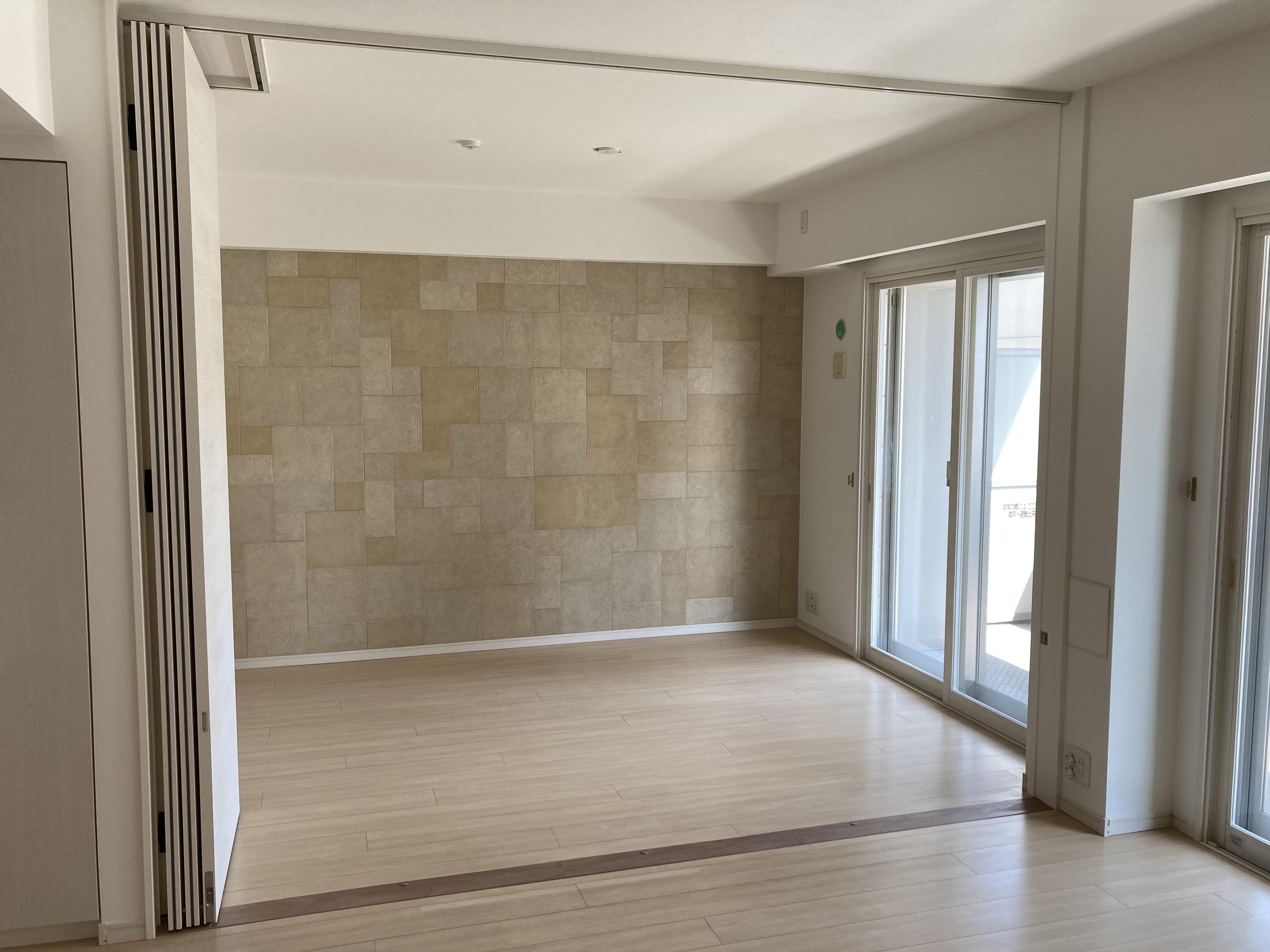 築16年マンションにお住まいのK様。住み慣れたお住まいをより使いやすく快適にする為にリノベーションしていきました。一番のポイントは間取変更です。リビングと洋室の間にある壁を撤去し、稼働式の扉に変更していきました。可動式の扉なので、全て開けると1つの大きなリビング空間になり、ひろびろとくつろぐことができます。扉を閉めれば、個室としても使用できるのでフレキシブルにお使いいただけます。他にもトイレや洗濯パン、個室ドアを開き戸から引戸に交換など行いました。