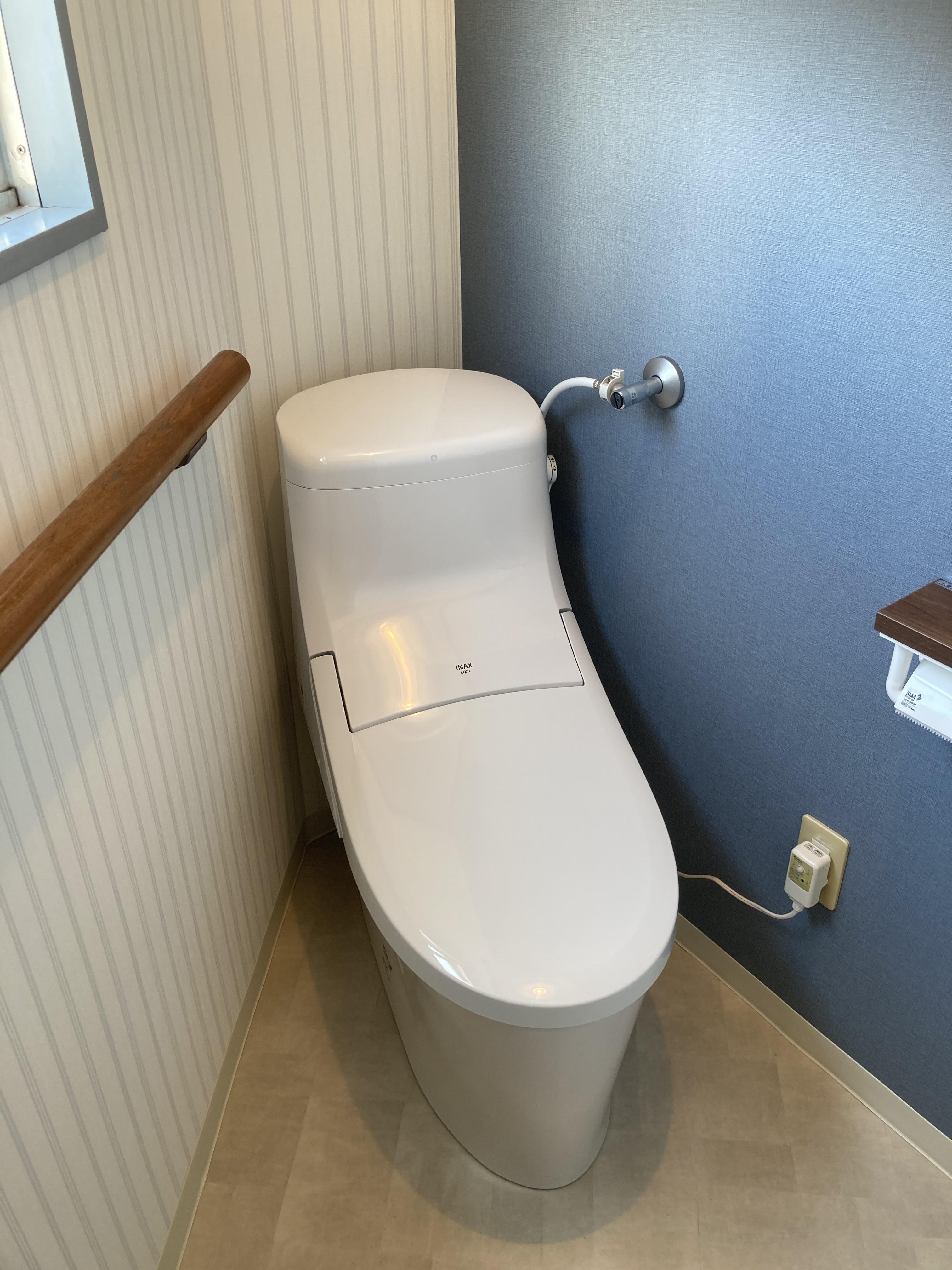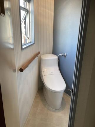 これまで使われていなかったフロアをリフォームしたいとのことでご相談を承りました。和室はクロスの張替えて明るく広々とした空間になりました。また道路の騒音が気になるとのことでインプラスを設置。さらに断熱効果もあるので、快適にお過ごしいただけます。従来の古いトイレは本体の交換と内装リフォームできれいにしていきました。壁の一面にブルーのクロスをお選びになられ、今風のすっきりとしたトイレ空間に生まれ変わりました。