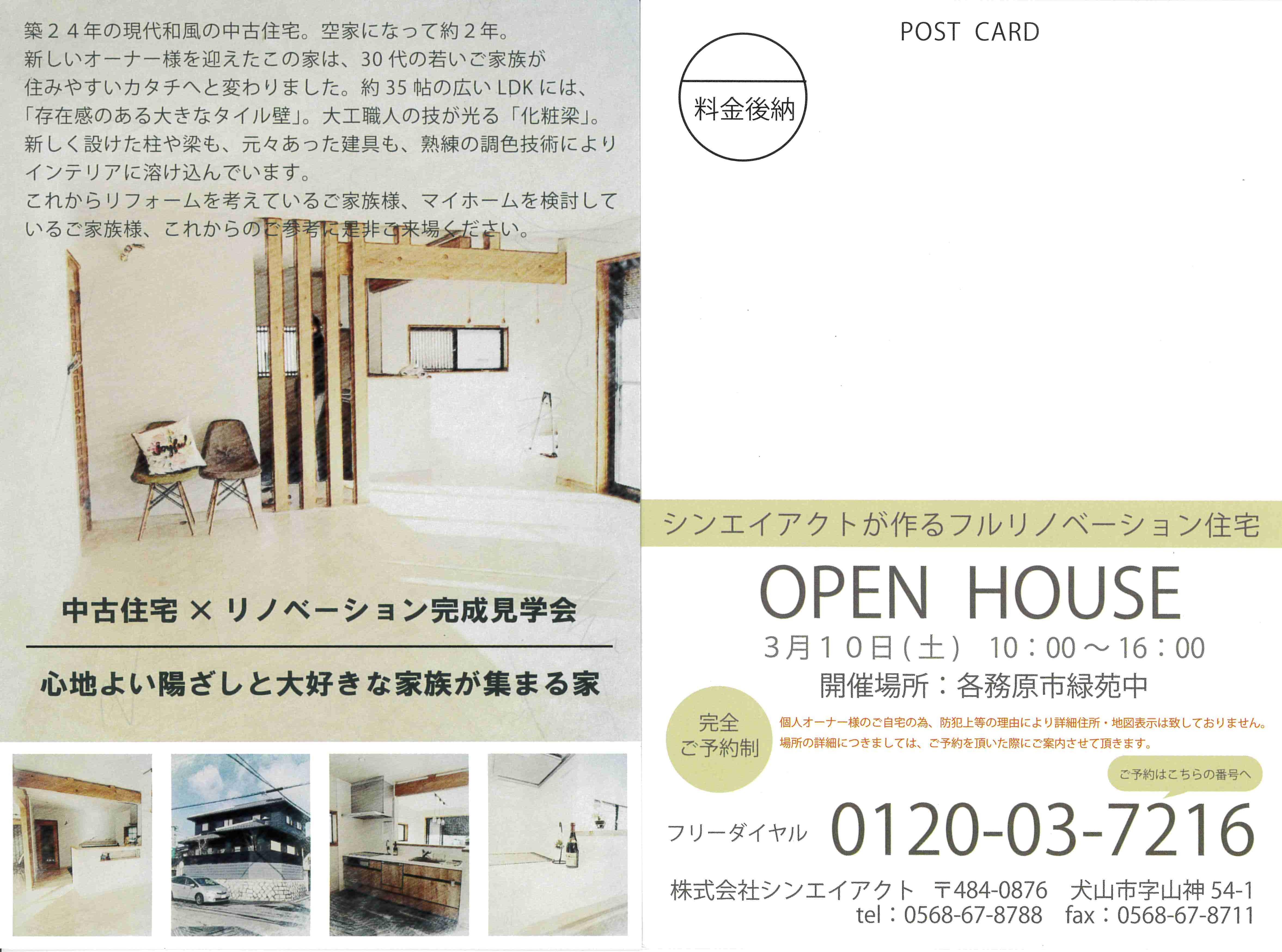 OPEN HOUSE ~中古住宅×リノベーション完成見学会のお知らせ~