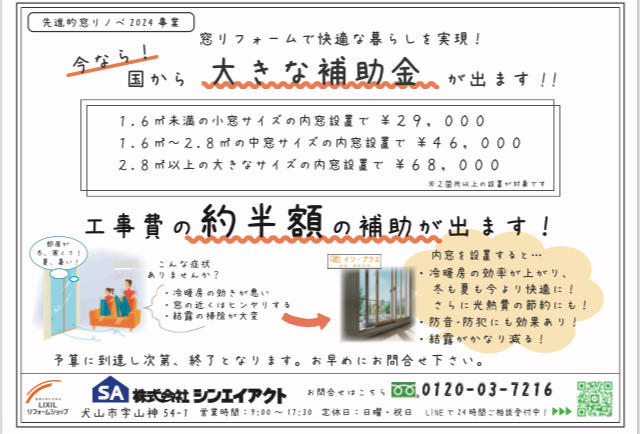LIXIL補助金対象インプラス(二重窓)リプラス(カバー工法)でお得に断熱リフォームしませんか!!