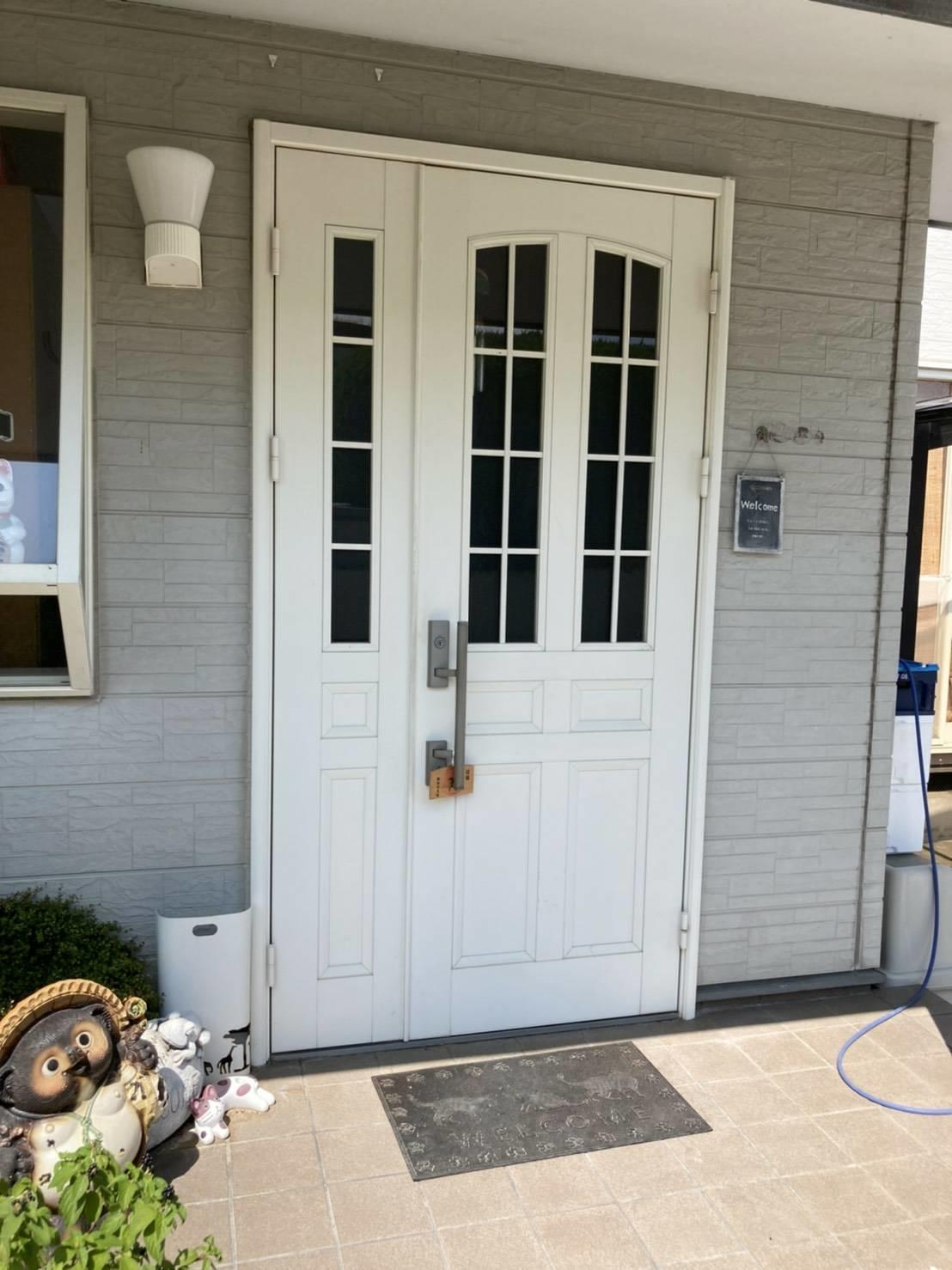 「外壁のリフォームに伴い、古い玄関もキレイにしたい」とお客様からご要望頂きました。 断熱性に優れ、夏は涼しく冬は暖かい。 またリモコンキーをバックに入れたままドアのボタンを押して解錠するワンタッチスタイル。 家族みんなが使いやすい&防犯にもしっかり配慮された玄関となりました。 外壁塗装・玄関などお家のお悩みワケンまでご相談下さい。