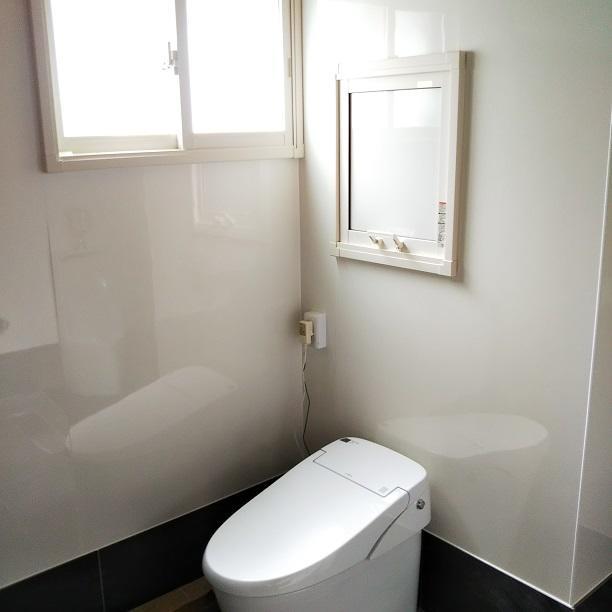 窓は内窓のインプラスを採用し、床のタイルを大きめのものに張り替えて、おしゃれなトイレ空間になりました。