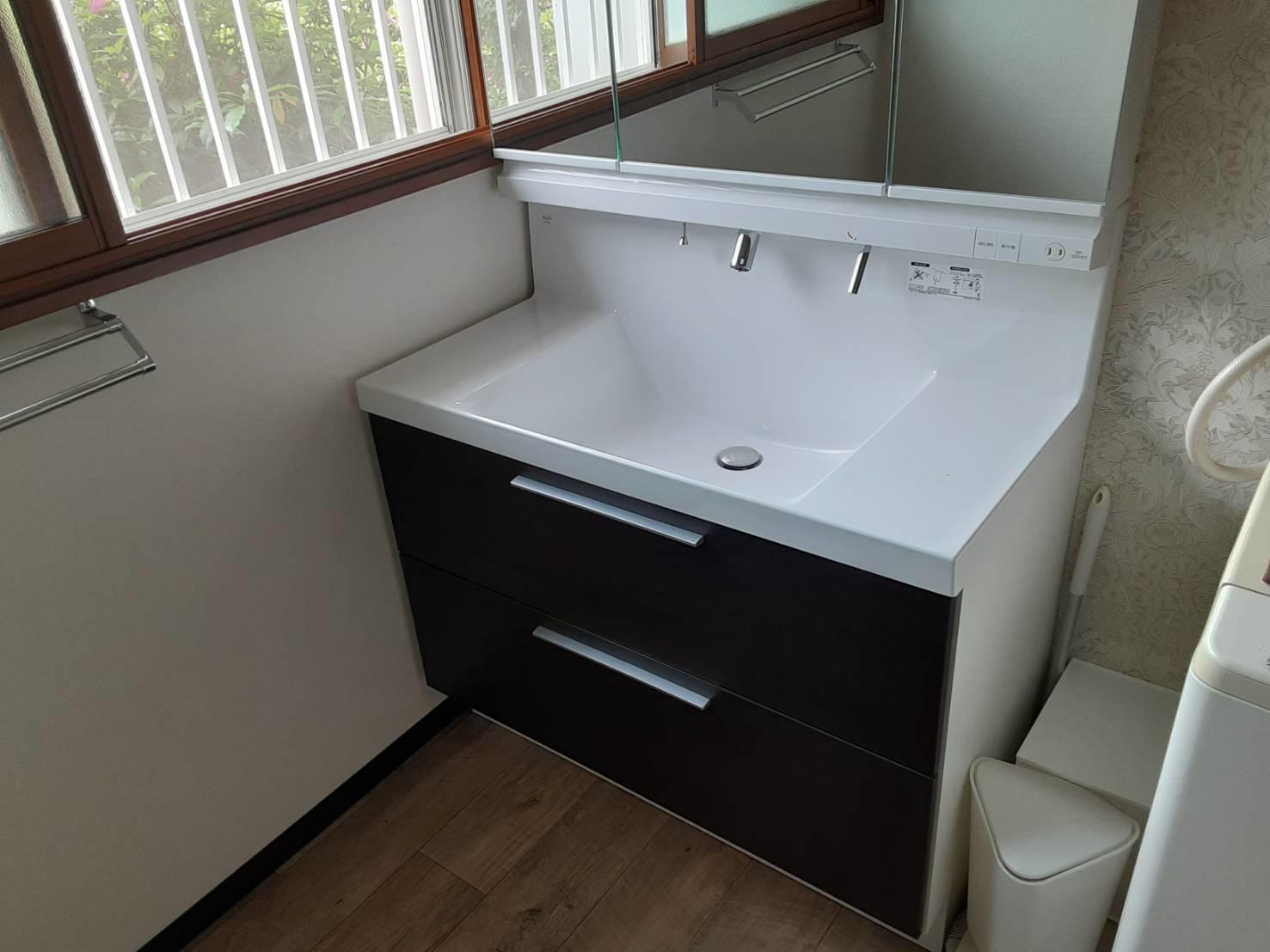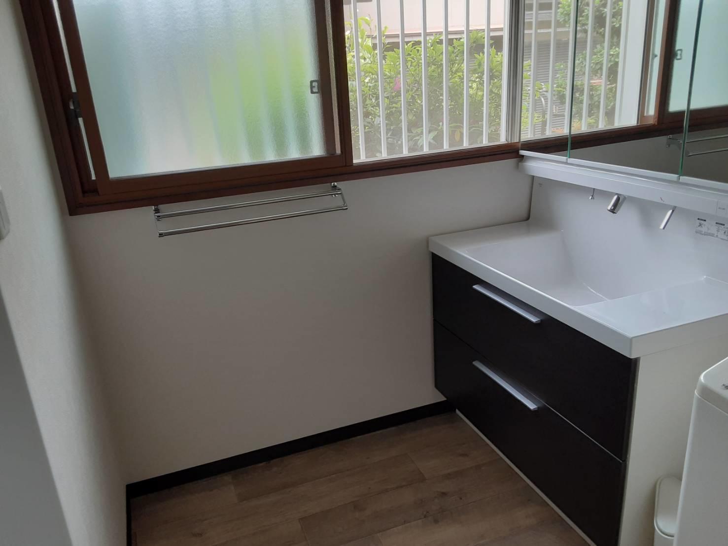 窓にはインプラス(内窓)を設置し、温かい洗面脱衣所の完成です。