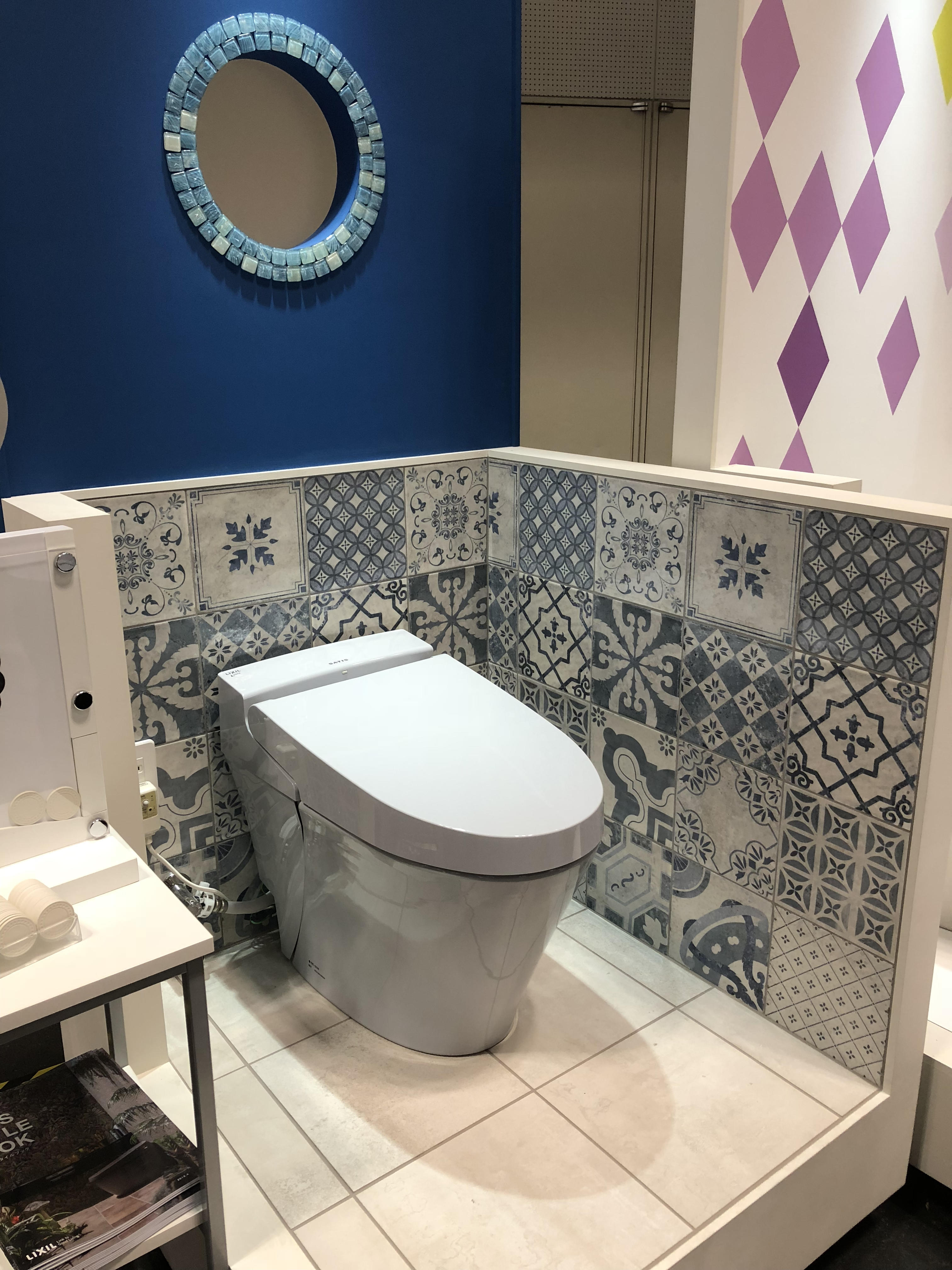 白のイメージが強いトイレですが、壁紙やモザイクタイルとの組み合わせでこんな素敵な空間に♪
