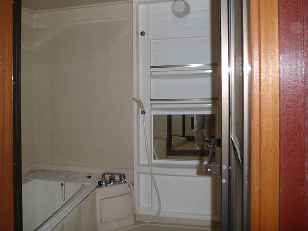 既設の簡易ユニットバスはお湯とお水の蛇口が分かれている為、温度調節も難しく不便でした。老朽化に伴う防水性の劣化も不安要素でしたので、最新のユニットバスにリフォームさせて頂きました。 新しいユニットバスなら、同じサイズでも空間は広々、追い炊きやお湯張り等の機能も付いているのでとっても便利です!もちろん、施工はきっちり丁寧にさせて頂き、アフターメンテナンスもお任せ頂けます。