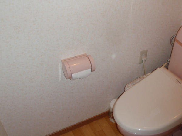 洋式トイレの壁紙クロスの張替です。カビが大量に発生し衛生的にも悪かったのでカビの生えない素材、防水パネルを設置しました。