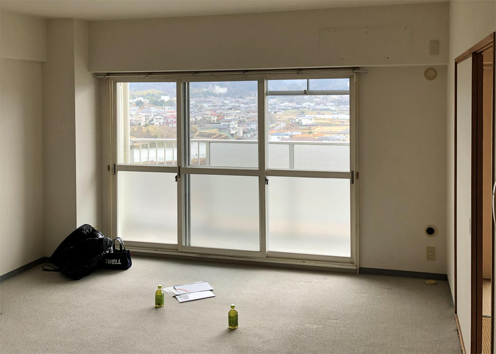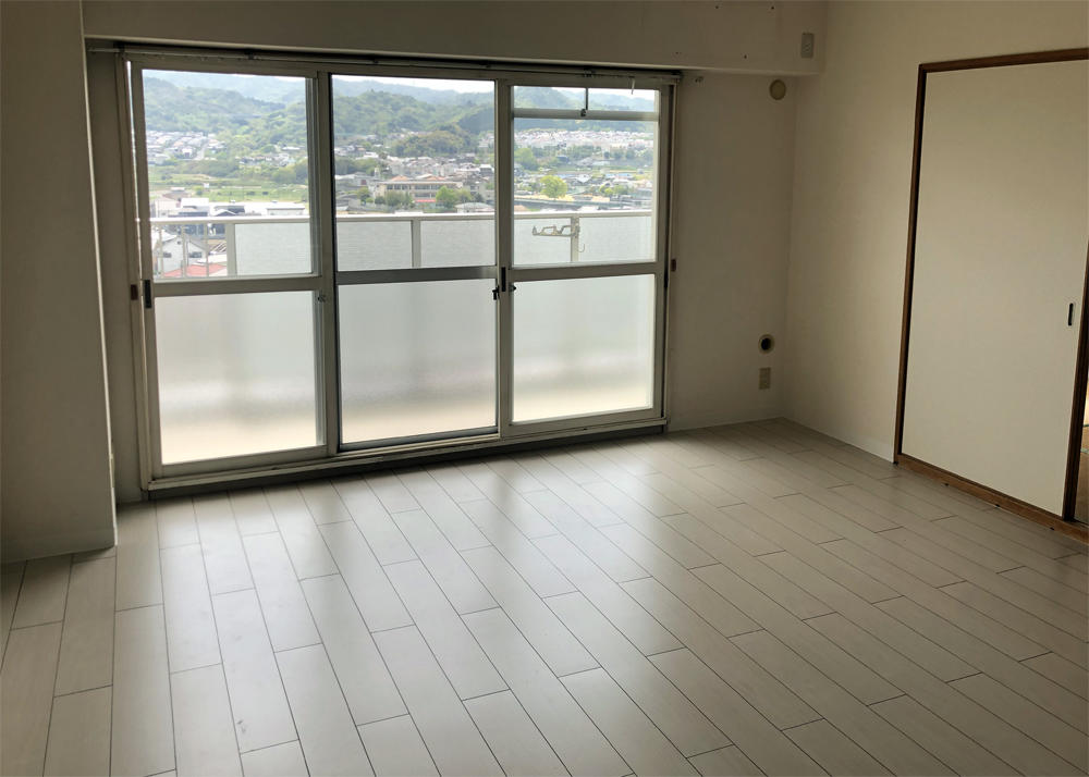 既存のカーペットを捲りマンション用のフローリングに張替えました。 こちらもホワイトで統一しまして清潔感あるリビングになりました。