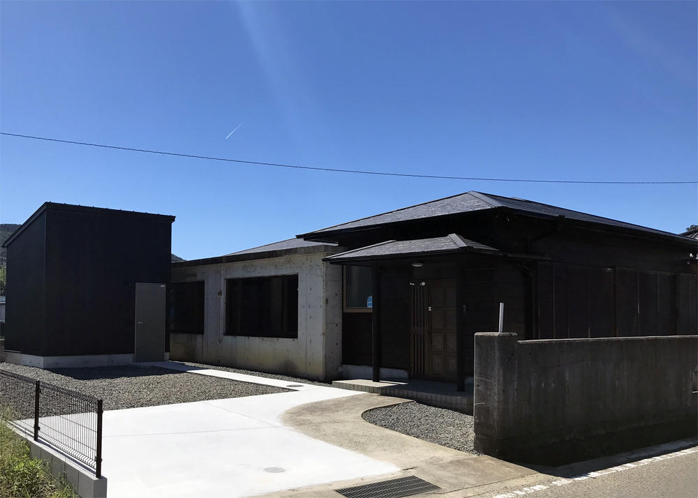 外壁・雨戸などを黒色でまとめ、シックな外観に仕上げました。