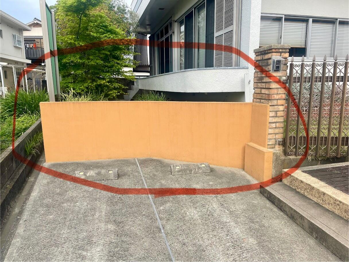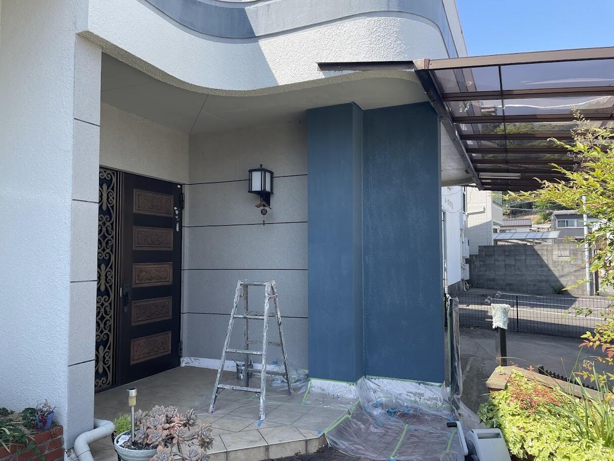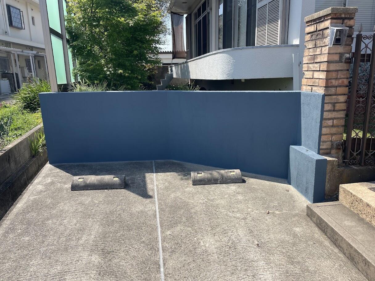 駐車場擁壁と玄関まわりの外構塗装を行いました。