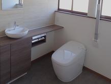 真庭市/間取りや間口を変更で、高齢者利用に配慮しつつ快適で意匠性の高いトイレ空間に