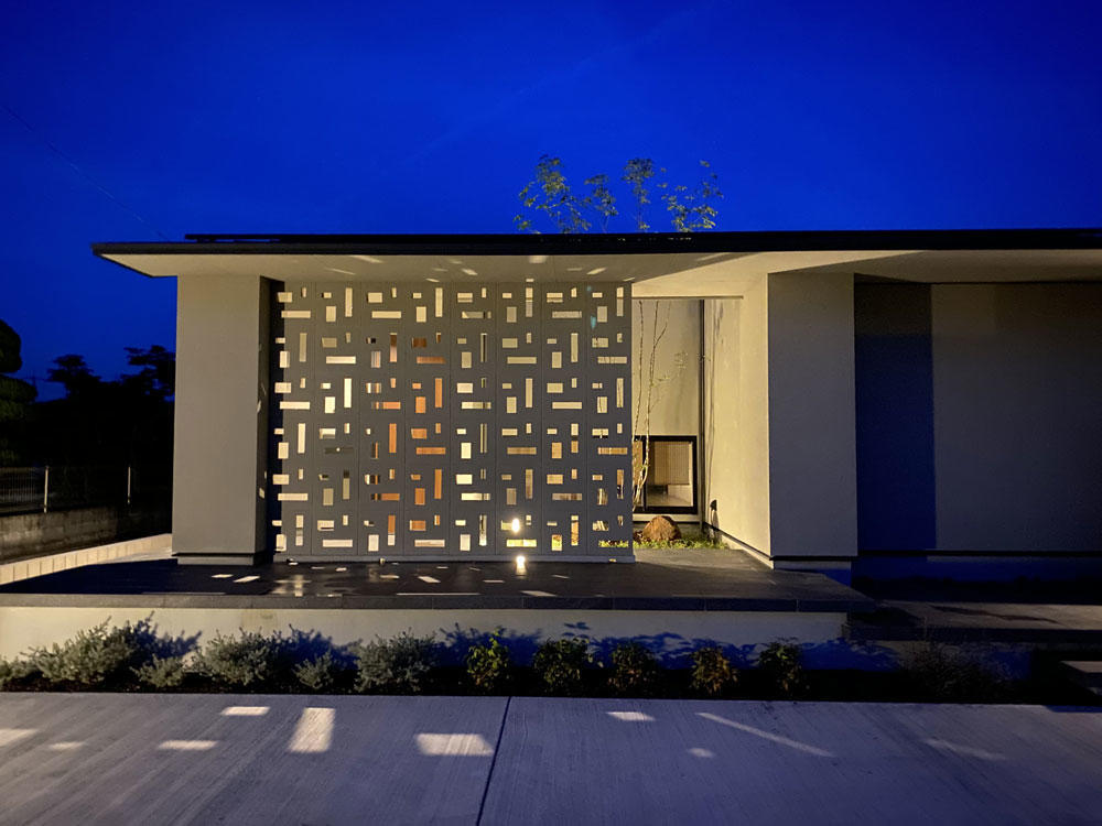 ・玄関目隠しの花ブロック(山内コンクリートブロック)