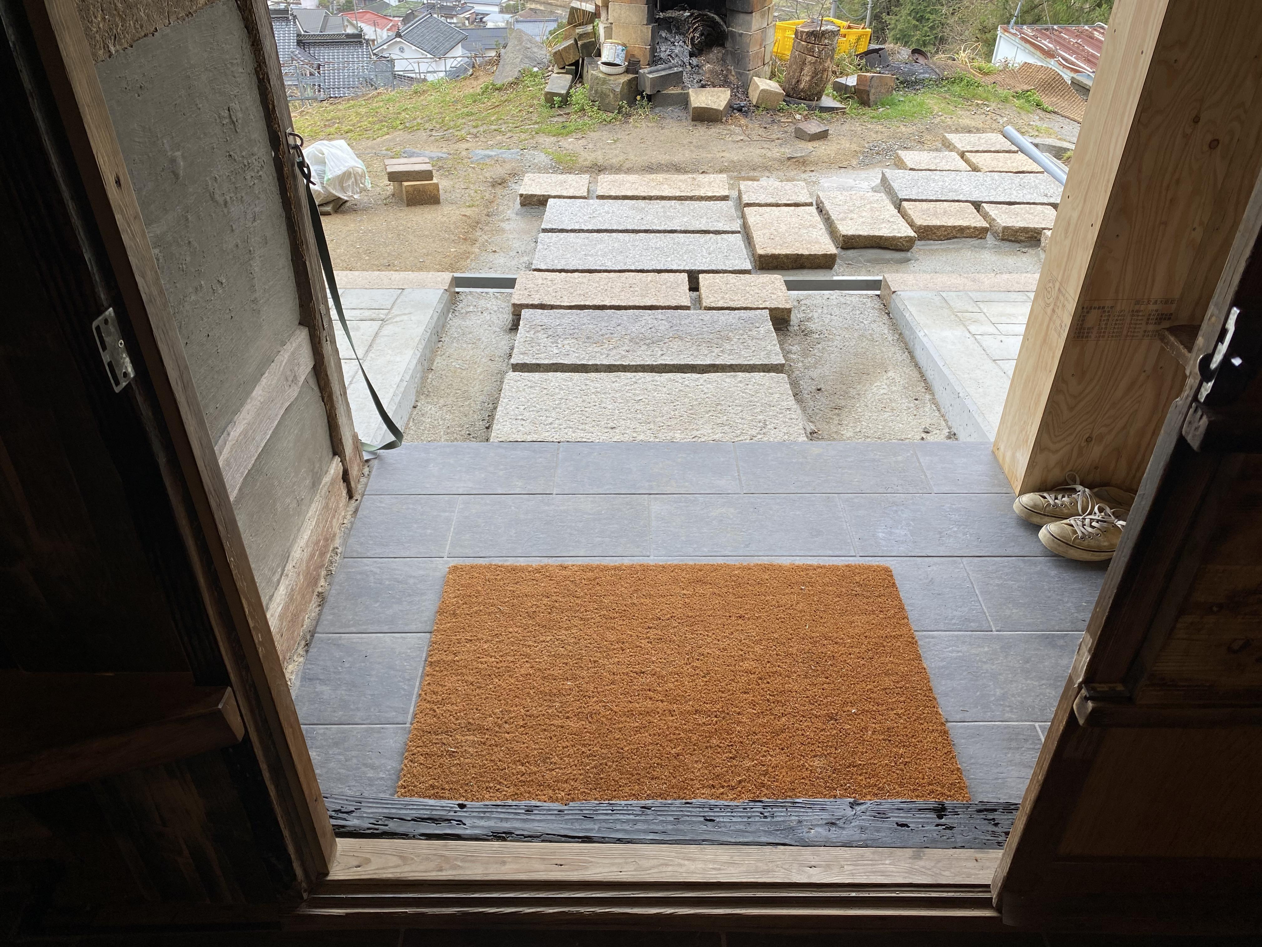 玄関:入口部分の撤去補強、玄関ポーチタイル張り、御影石、水路