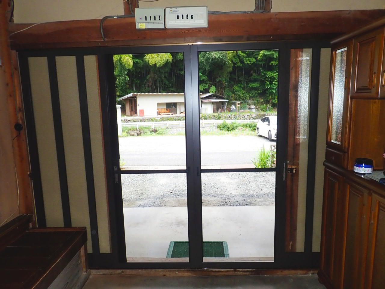 既存玄関引き戸が破損したため、今回の依頼を受けました。施主様から既存と同じ雰囲気で格子間隔を狭くし落ち着いた感じの玄関引き戸に交換したいとの要望があり、提案させて頂いた網戸とともに施工させて頂きました。新しい玄関引き戸は開け閉めが軽くなり、網戸もこれから暑くなる時期の通気に役に立つと喜ばれました。