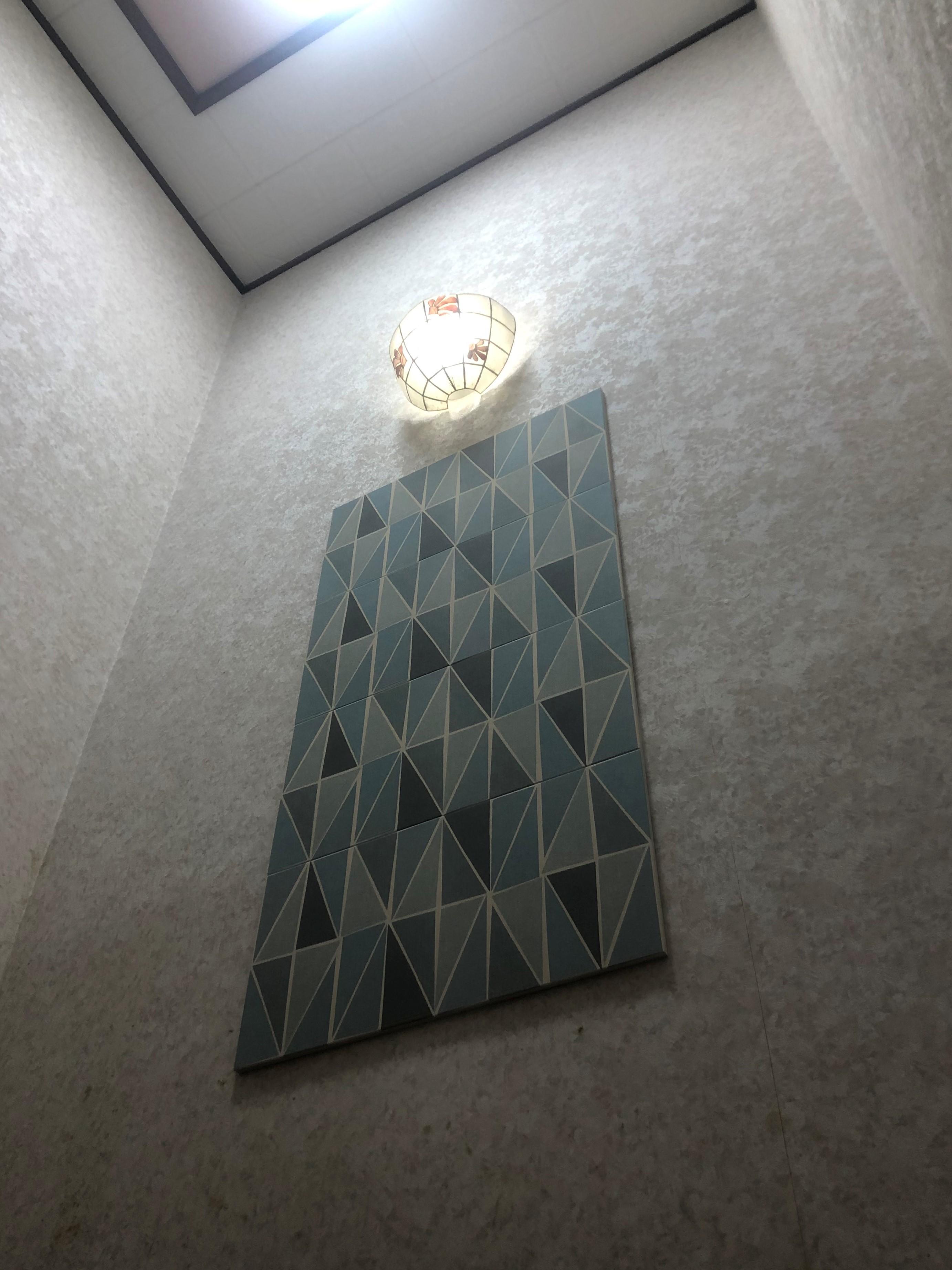 縦長のパターン柄で、吹き抜けの縦長の壁にサイズ感も良いですね。