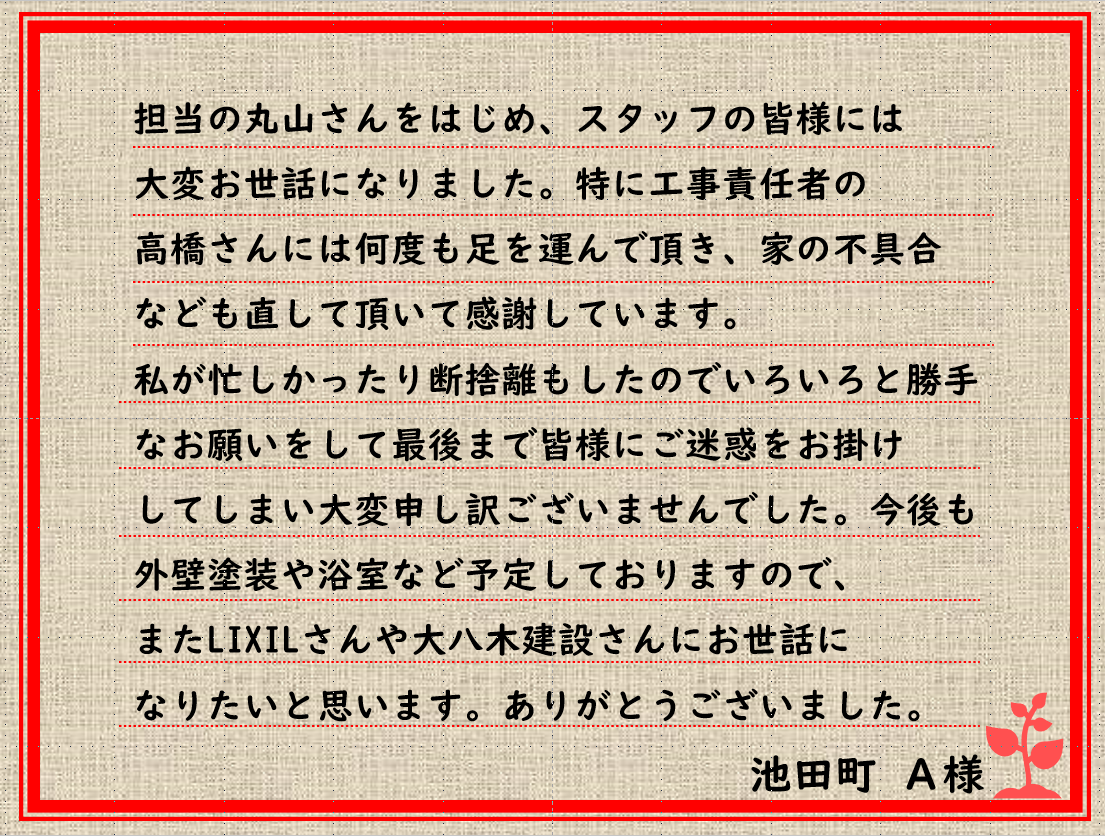この度はリフォームのご依頼をいただき誠にありがとうございました。