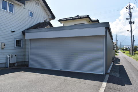 ⇒⇒⇒お庭のスペースに男の隠れ家を 憧れのガレージを新設 シャッター付きで防犯と採光を兼ね備えた明るい車庫
