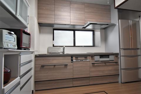 幅2250㎜のキッチンには、食洗機も内蔵。食洗器は食器の洗浄だけでなく 料理機器もパワフルに洗浄してくれる為、よく使用するフライパンや小鍋の収納場所として使用しても良さそうです。