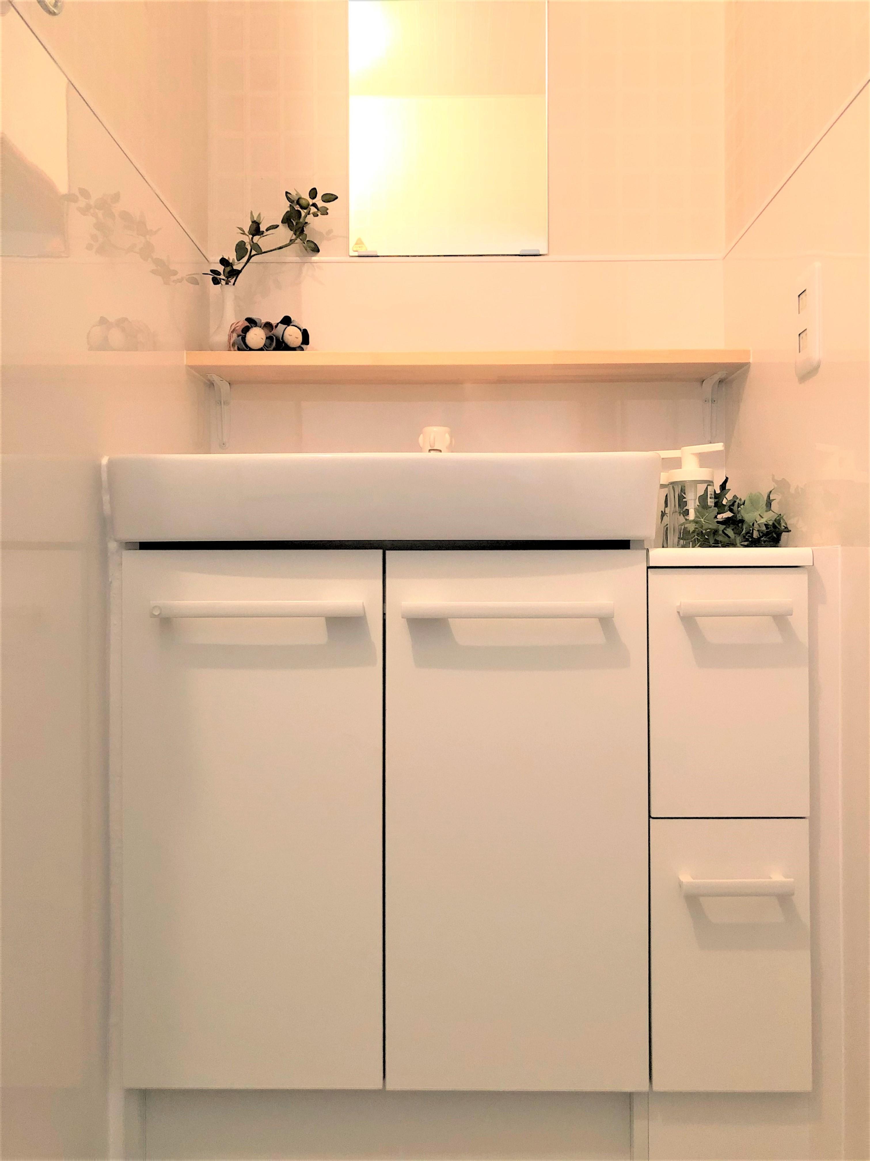 洗面台のサイズを測り、+150㎜の2段引き出しを追加しました。