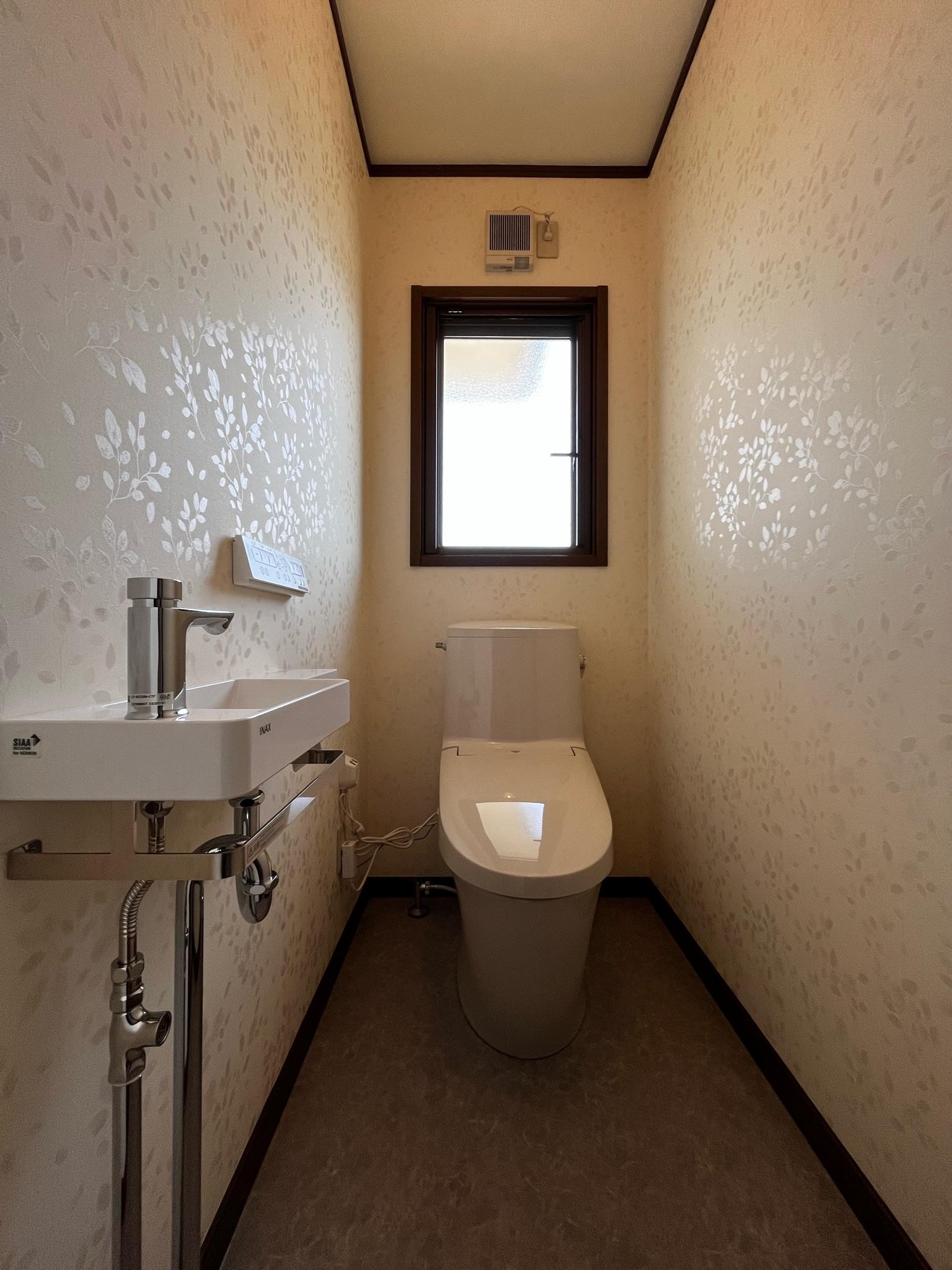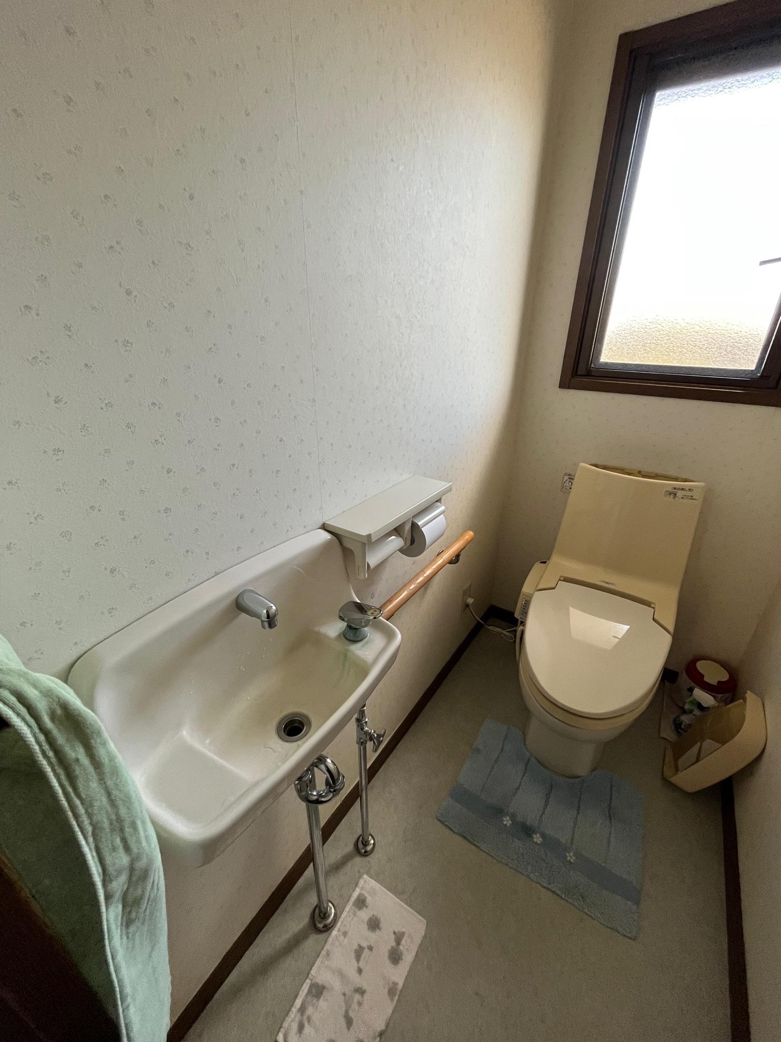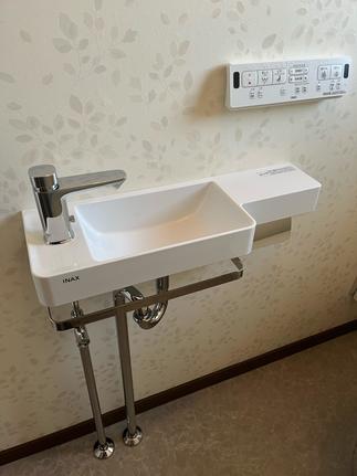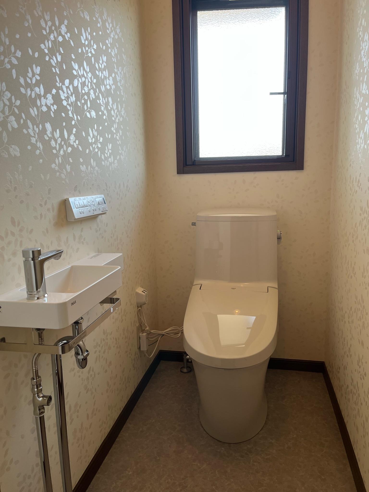 便器は、様々な排水方向や幅広い排水芯に対応する「アメージュ」。手洗いはあり・なしをお選びいただけますが、こちらは手洗いなしのタイプです。