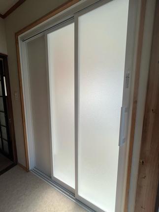 扉は三枚開き戸でゆとりのある開口部に。把手も大きく開閉もスムーズです。引き戸なので開け閉めの際も扉が邪魔にならず、ゆったりと出入りすることができます。