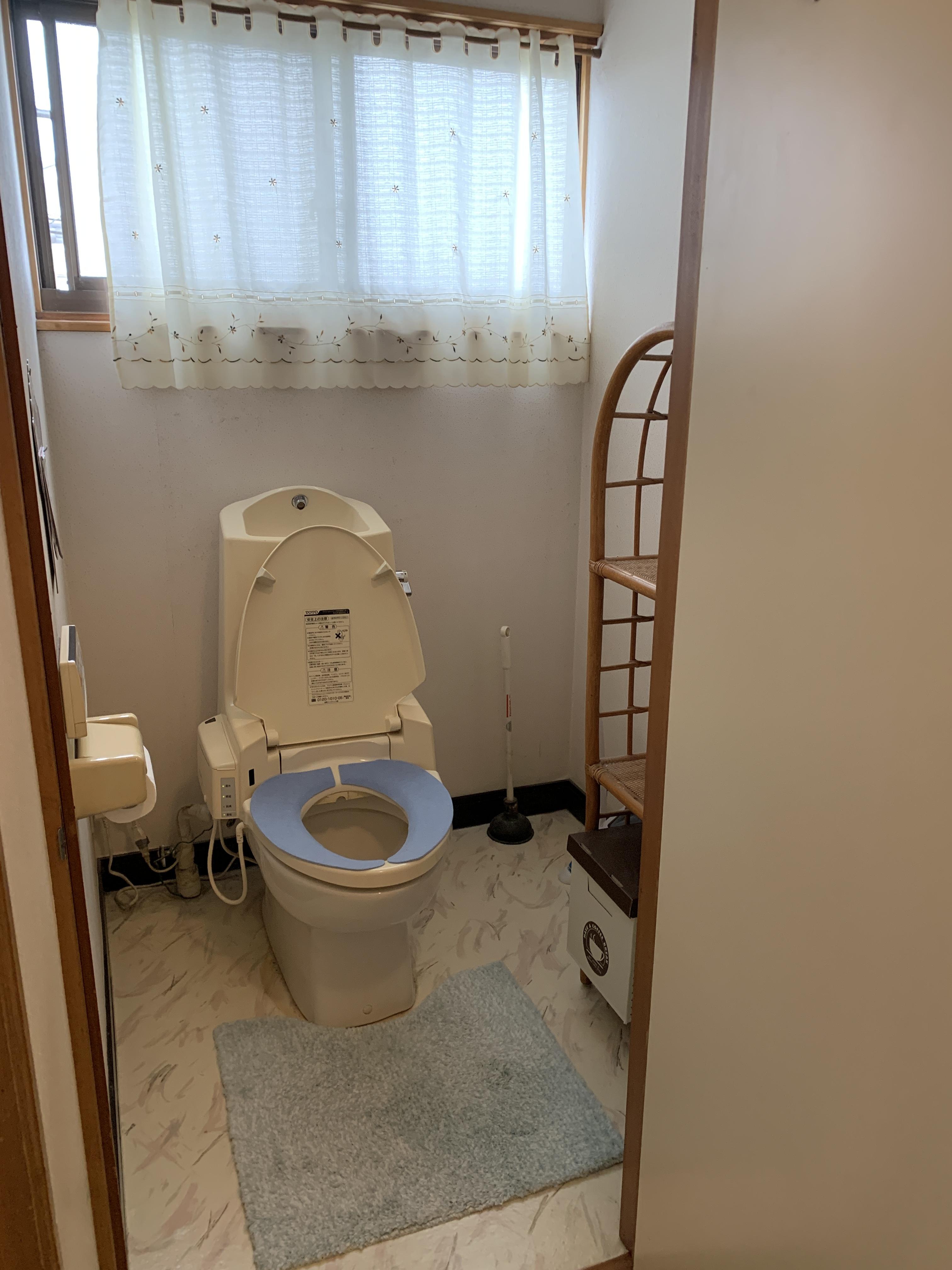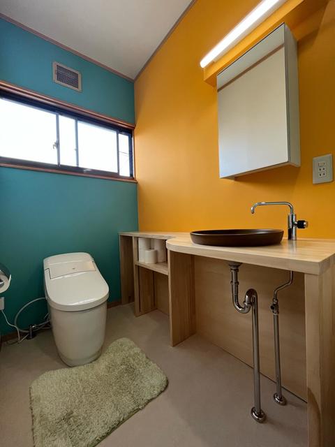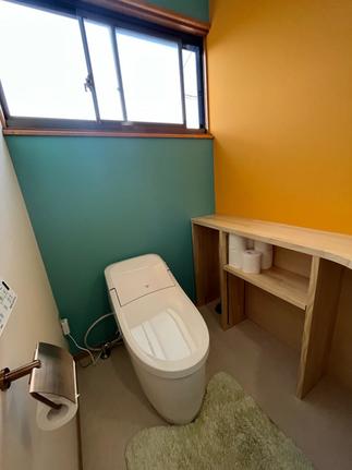 まず目に入ってくるブルーとイエローの壁がトイレ空間をぱきっと印象付けてくれます。