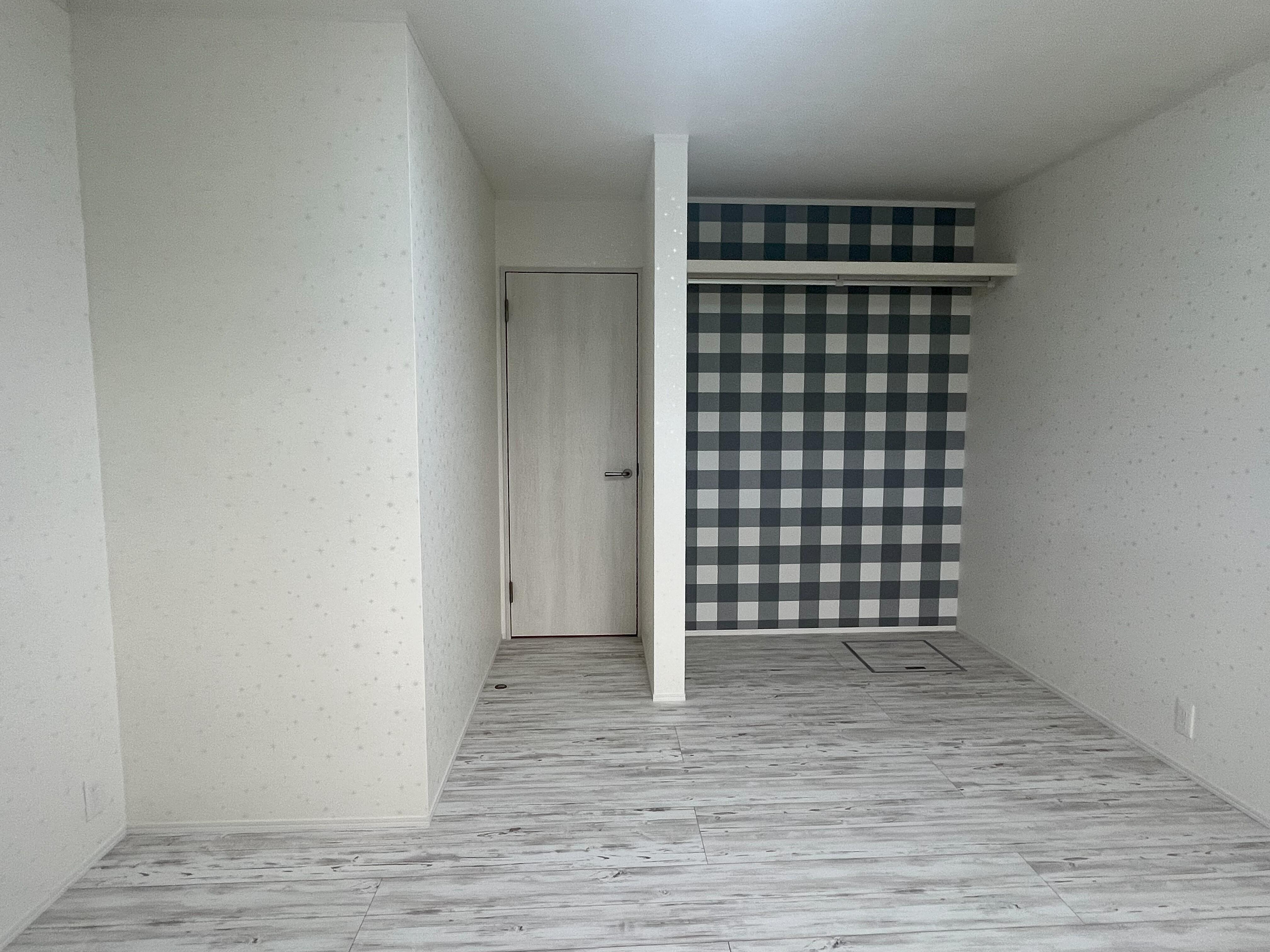 〇アクセントクロスやライトブルーの室内ドアなどを取り入れた、北欧ナチュラルなインテリア