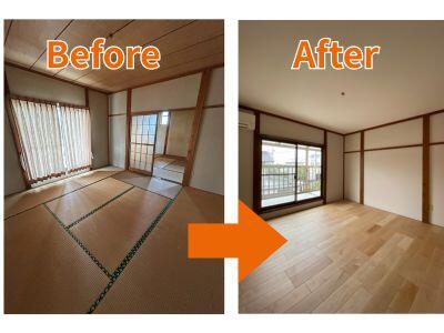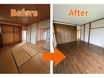 間に間仕切り壁を設置するとともに、床材と壁のクロスも交換し、