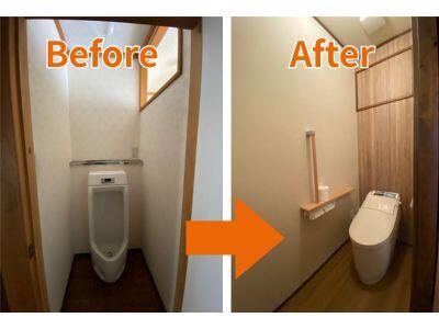 小便器を撤去し、隣の物入れだった空間とつなげて、トイレ(INAX製「プレアスLSタイプ」)を設置させていただきました。