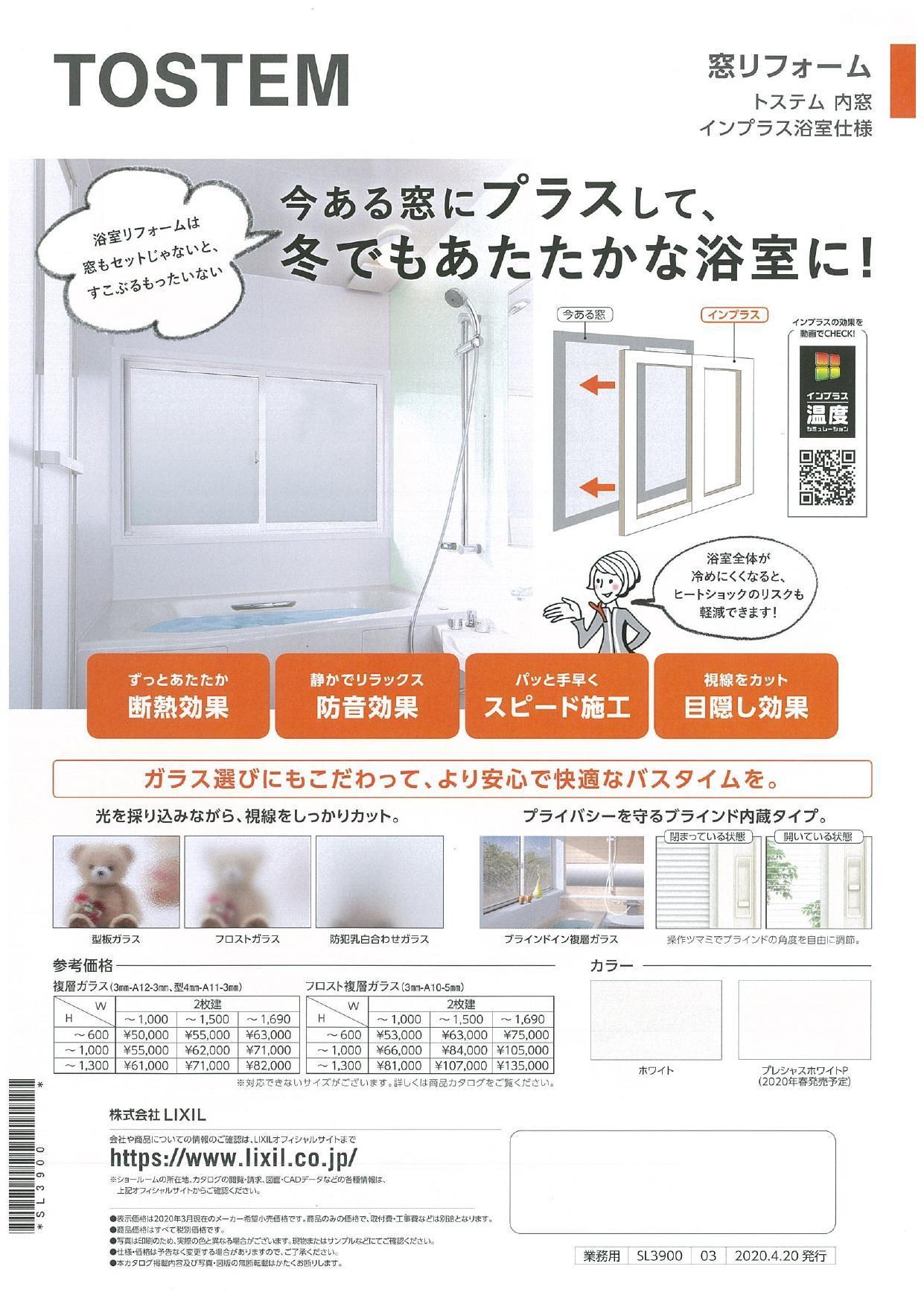また、浴室のリフォームなら 今ある窓にプラスして、内窓を付けると より快適になります。