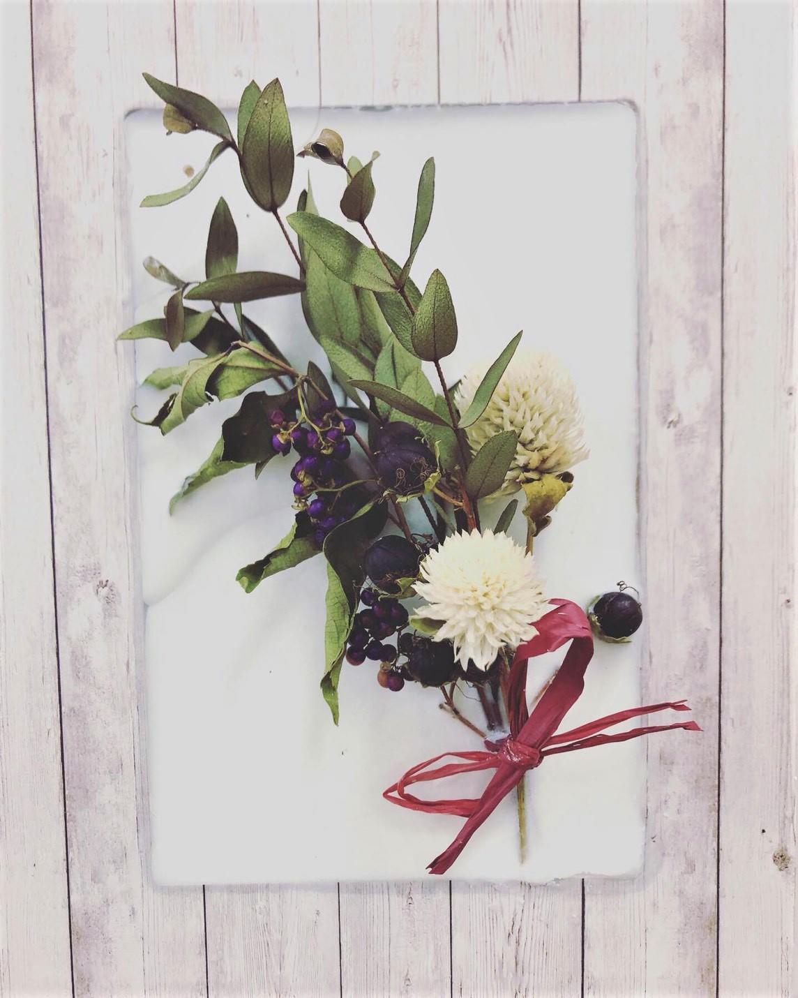 ドライフラワーやドライフルーツ等をデコレーションし、フレームに閉じ込めます。飾っておくだけでも とても素敵です♪