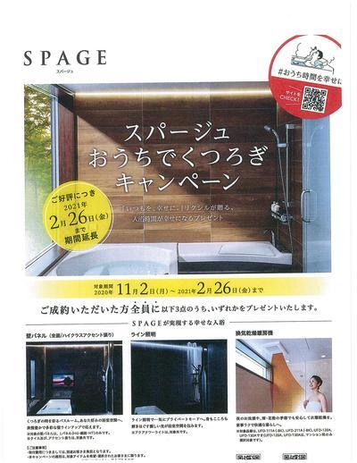 しっかりした保温や光・水で楽しむ機能が満載、スパのような寛ぎが体験できるスパージュ。 2/26日までの間、スパージュにて浴室のリフォームをして頂いた方!