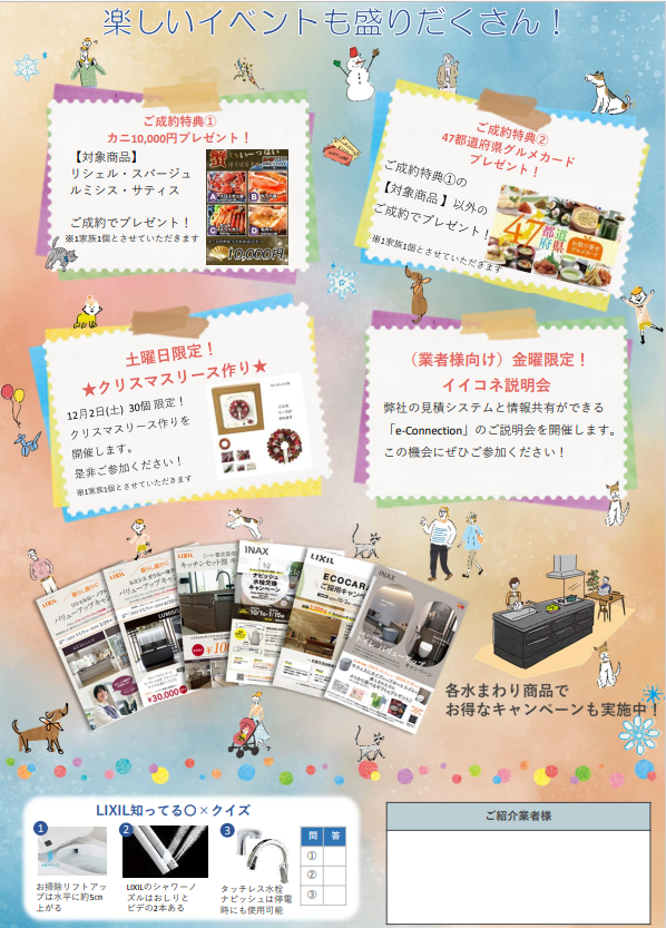 ご来場特典もございます!さらに当日のお見積り・ご成約で様々な特典が用意されております!