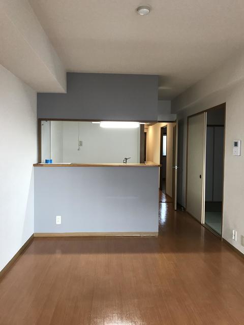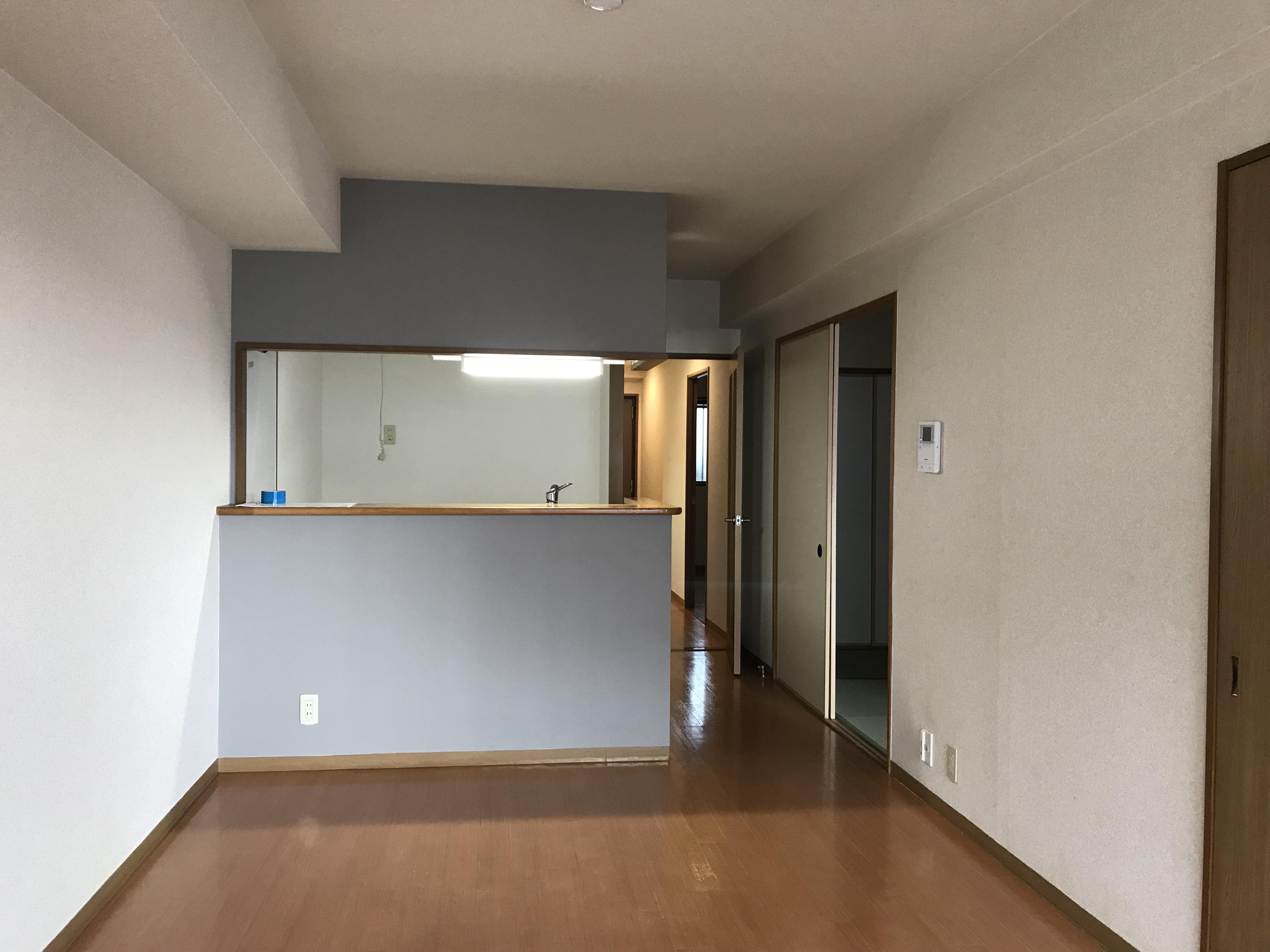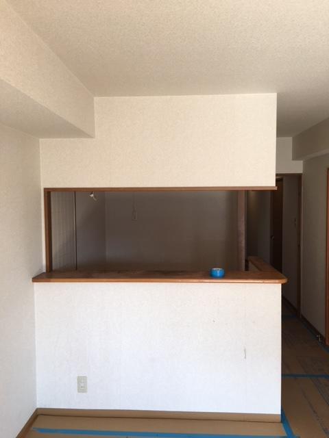 もともと白のクロスでしたがキッチン部分のみアクセントとしてクロスを貼り替えました。