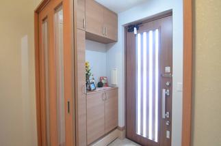 小さなお子様に目の行き届く明るく、開放的なリビング、玄関まわりも暖かく過ごせるように内部ガラス戸をつけて快適に。フローリングも傷が目立っていたので、張替して、変わりました。