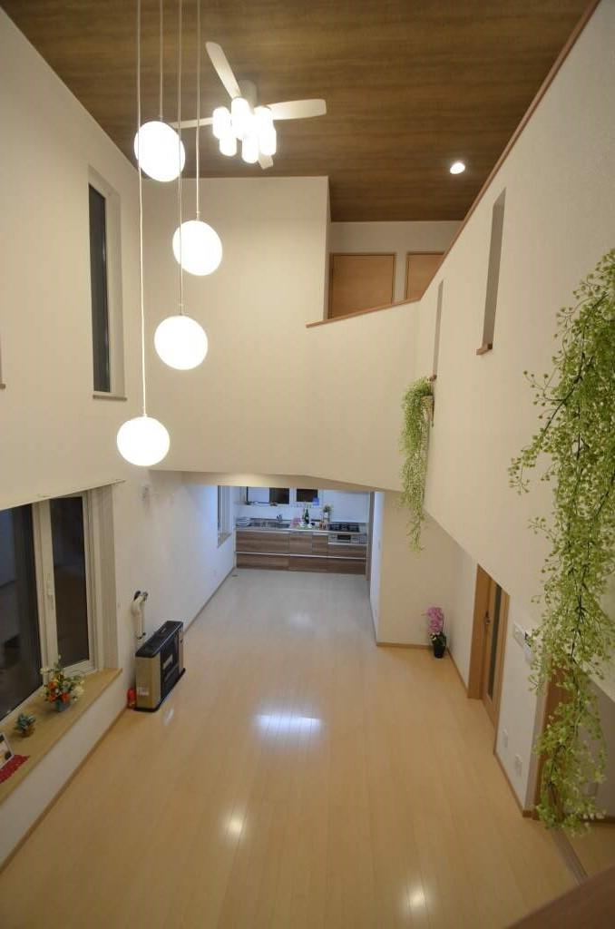 雪が降るぎりぎりでサイディングと外構工事が完了し、リフォームは冬期間中でした、すごく寒く、暖房も簡易的なものでしたので、大変でした。吹き抜けがある住宅は少ないので、リフォーム前にどのようなリフォームをするかをかなり悩みましたが、和室をなくしてしまった分、リビングを広く活用できるようになったし、2階のホールから1階が直接見えないように 腰壁にしたので、プライベートも守れるようになり、よかったと思います。今回は土地が両面道路なので、2階からの眺めも開放的です。すごく、よい住宅になったと思います。