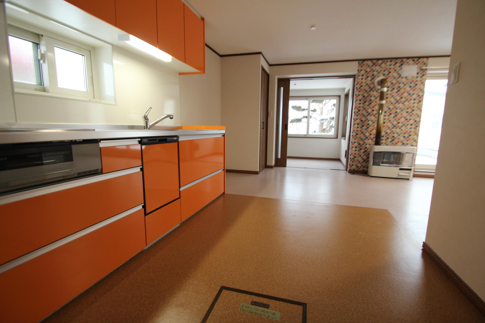 リフォーム始めて、引き渡すときはちょうど雪も積りはじめ、ブロック造の建物なので、寒いことを気にしており、 床下や、壁はスタイロフォームで断熱し、ストーブ1台でしたが、ストーブ消して帰り、リフォーム途中朝はいると、前日の夕方の暖かさが 朝まで残っていたのは、感動しました。 かなり、時間がかかり、引っ越しぎりぎりでしたが、ご協力いただき、何とか引き渡しできました。 一般的には、床はフローリングにする方が多いなか、あえてクッションフロアーをご希望され、 逆にいろんなデザインのフロアーなので、すごくお部屋の中が楽しい雰囲気になりました。