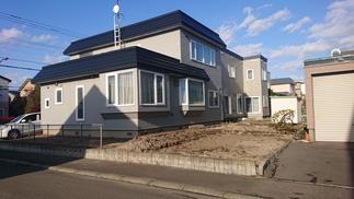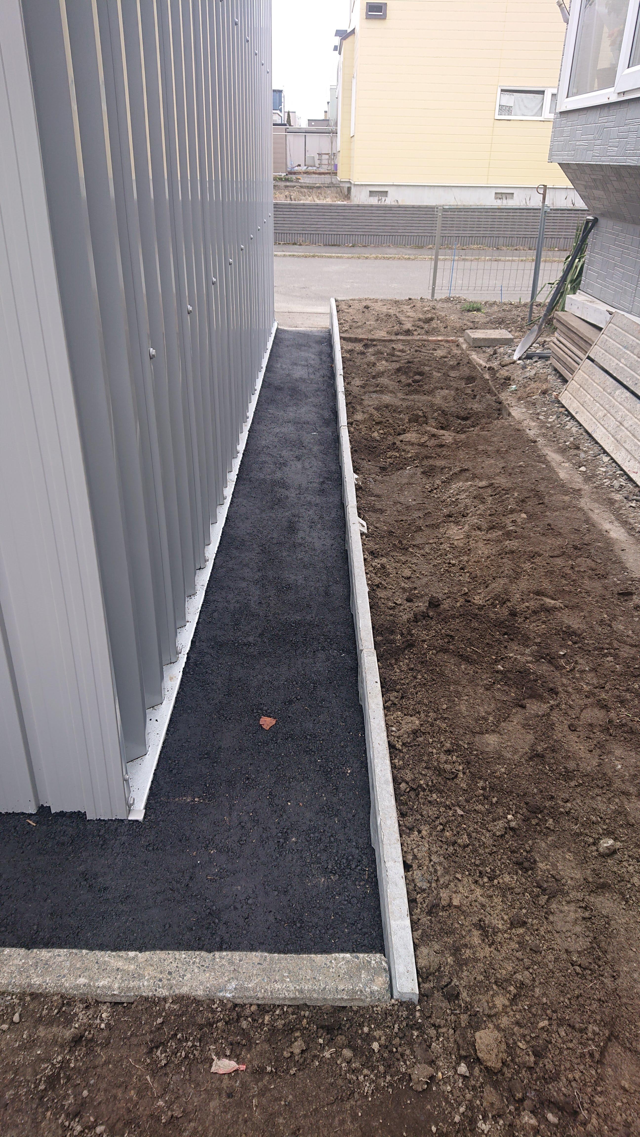 雪がちらつく12月の設置でしたので、アスファルト工事は雪解け後になりました。 車庫の高さもあるので、室内が暗く感じるかな、、と思ってましたが、 多少敷地に余裕があったので、気になりませんでした。 車庫の裏スペースもちょうど手ごろの大きさで、これから、畑を楽しむように 準備中で、これから、もっと変わっていくんだろうなあ、、と思いました。