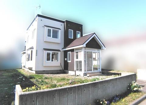 外壁の劣化がかなり進んでいた為既存外壁を剥がしての張替になりました。 元のツートーンの配置に合わせて白と茶色の金属サイディングに変更になりました。 白い外壁で明るく、落ち着いた外観になりました。