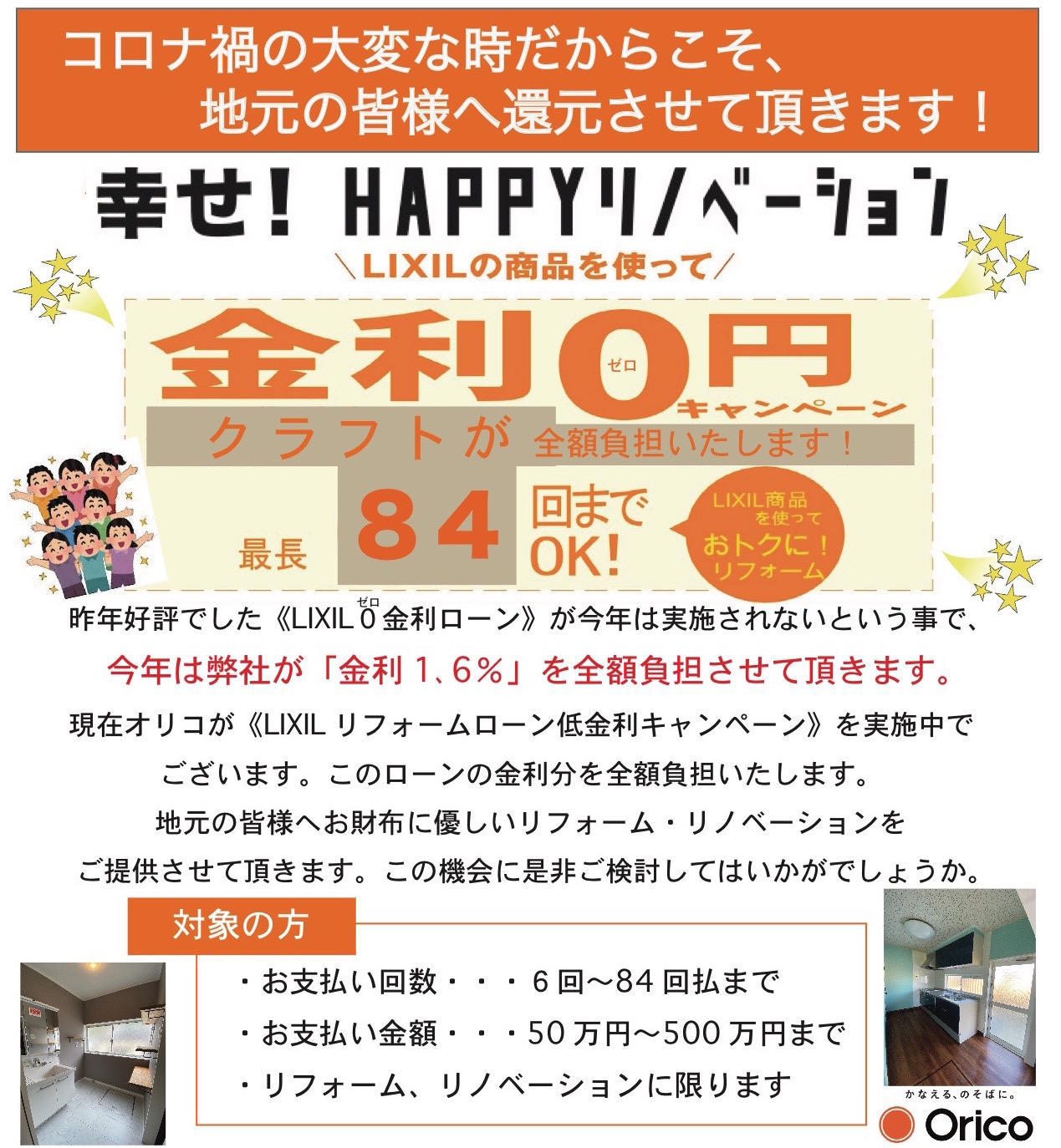 それと並行して、クラフトでは【オリコローン金利1.6%を全額負担】させて頂く「金利0円キャンペーン」を実施中です!!