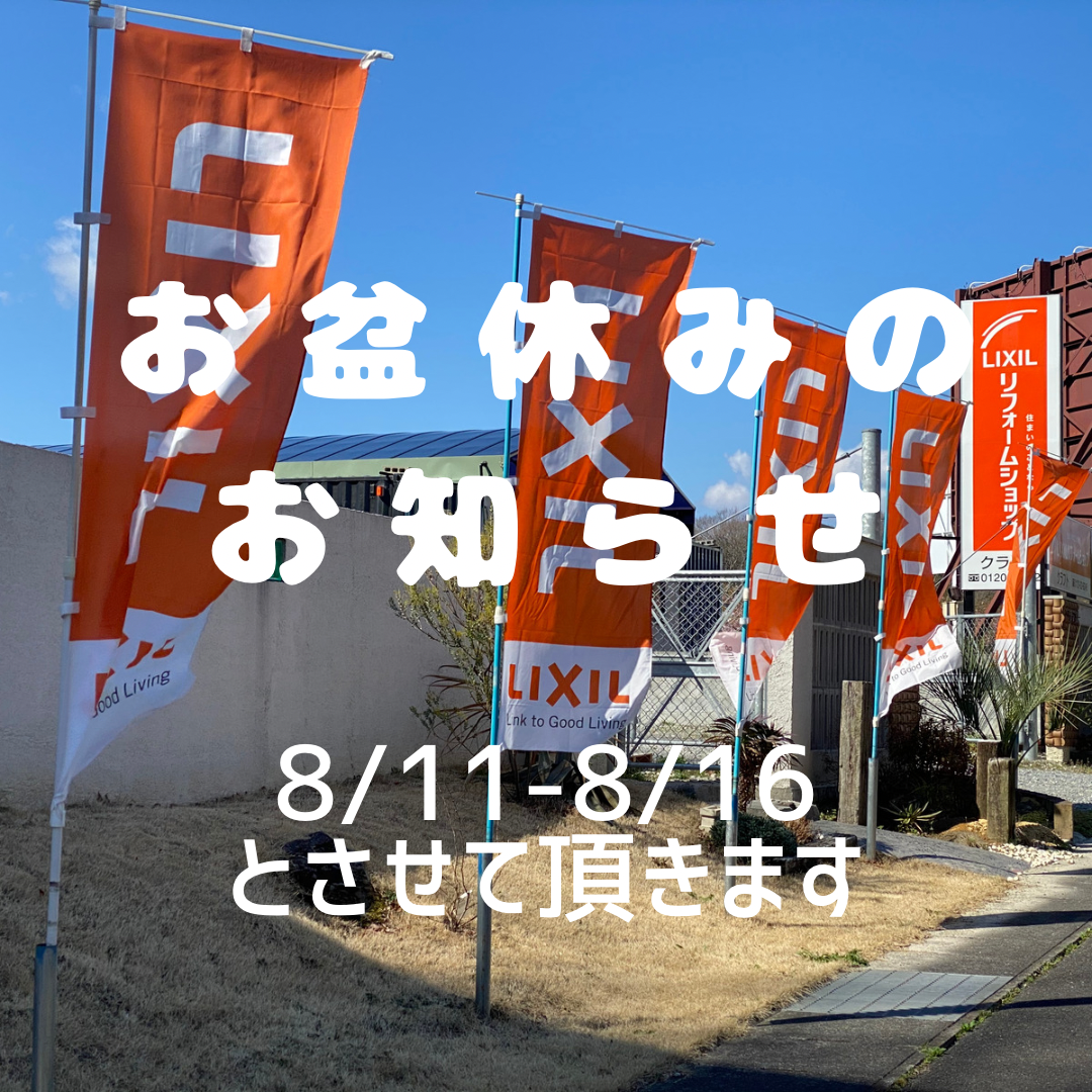 8月11日(金)~8月16日(水)までを夏季休暇(お盆休み)とさせていただきます。