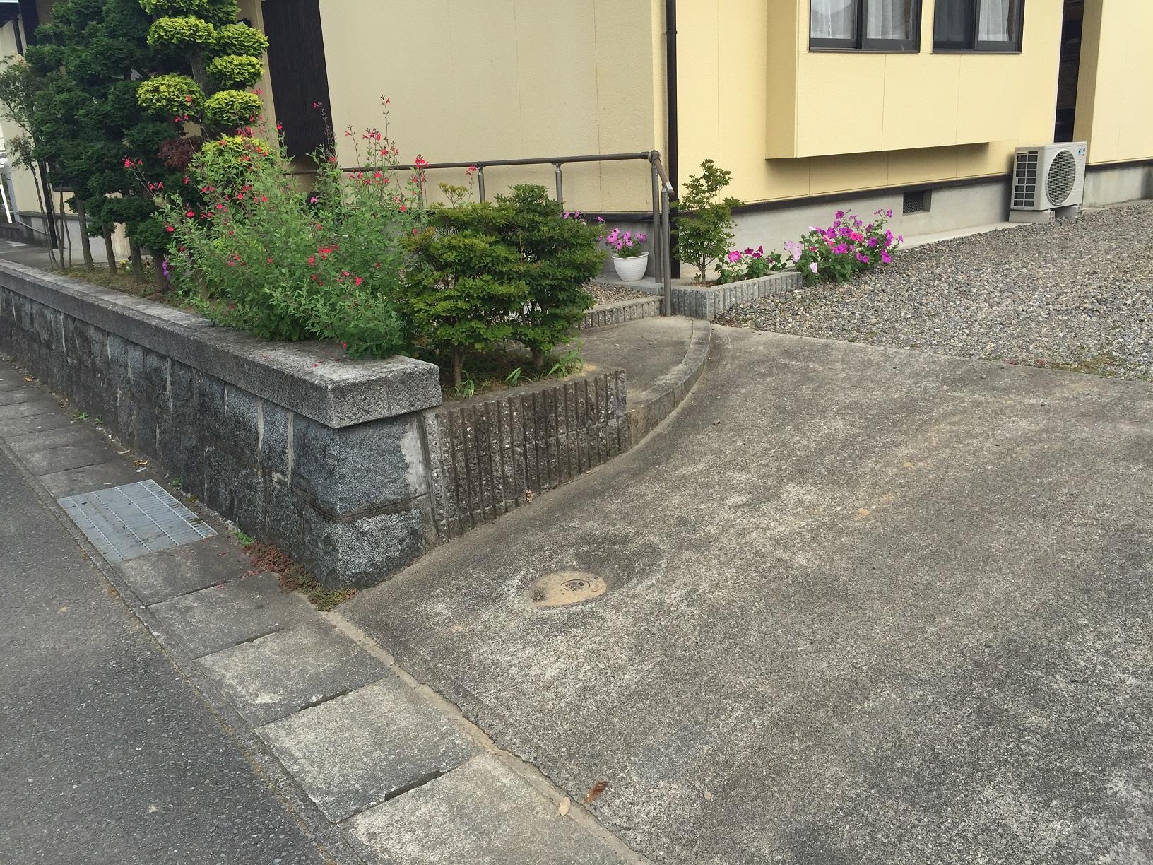 前面道路の交通量が増えてきたことに伴い、気になりだした目線や、車の入り辛さを改修しました。