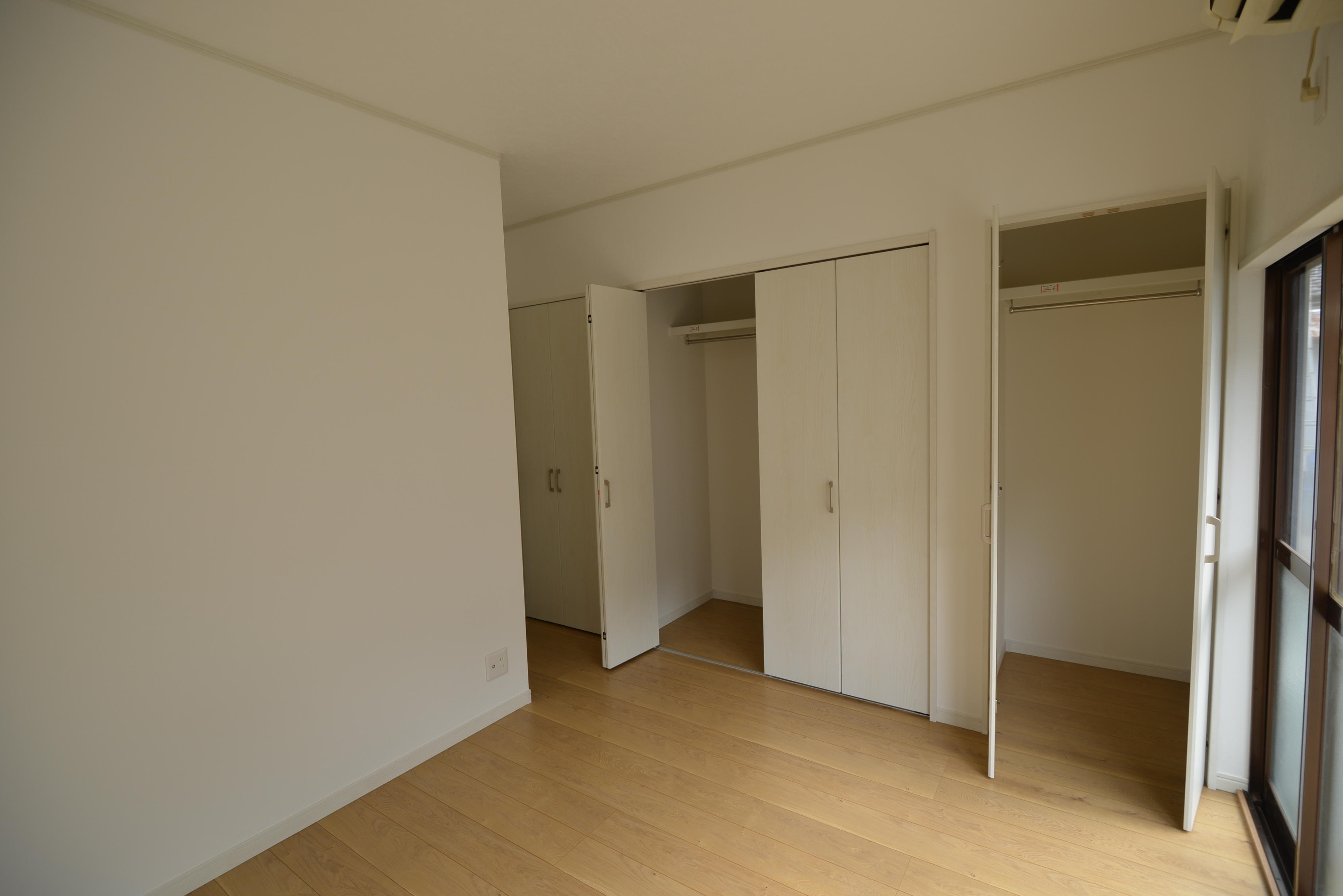 もともとは物入はなく、隣の部屋とふすまで仕切られていました。 リフォームで奥行きのある収納スペースを作りました。 和風の部屋を白を基調とした洋間にしました。 とても明るく感じます。