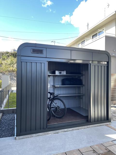 カスケードガレージの設置工事です。 カスケードは、サイズや色が豊富にあります。 駐車場にする方やバイクや自転車を入れる方などなど 大きさによって様々な使い方ができます。 2連タイプもあり、2つ繋げることも可能です。