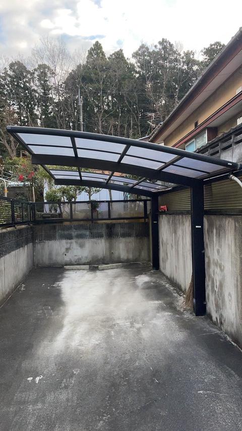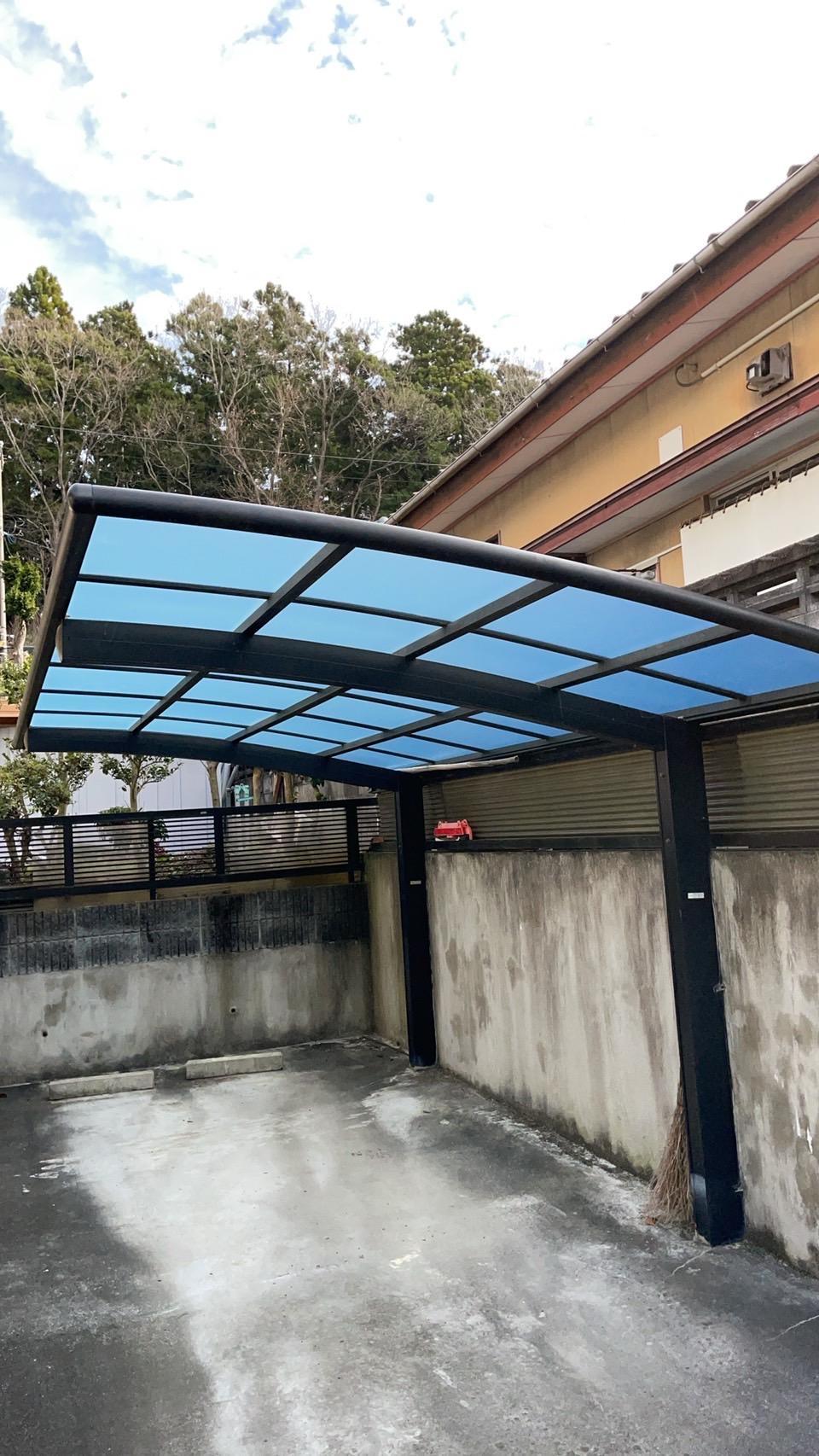 現在お使いのカーポートの屋根が割れて破損していたので、屋根修理工事をしました。 1日で終わる工事です。