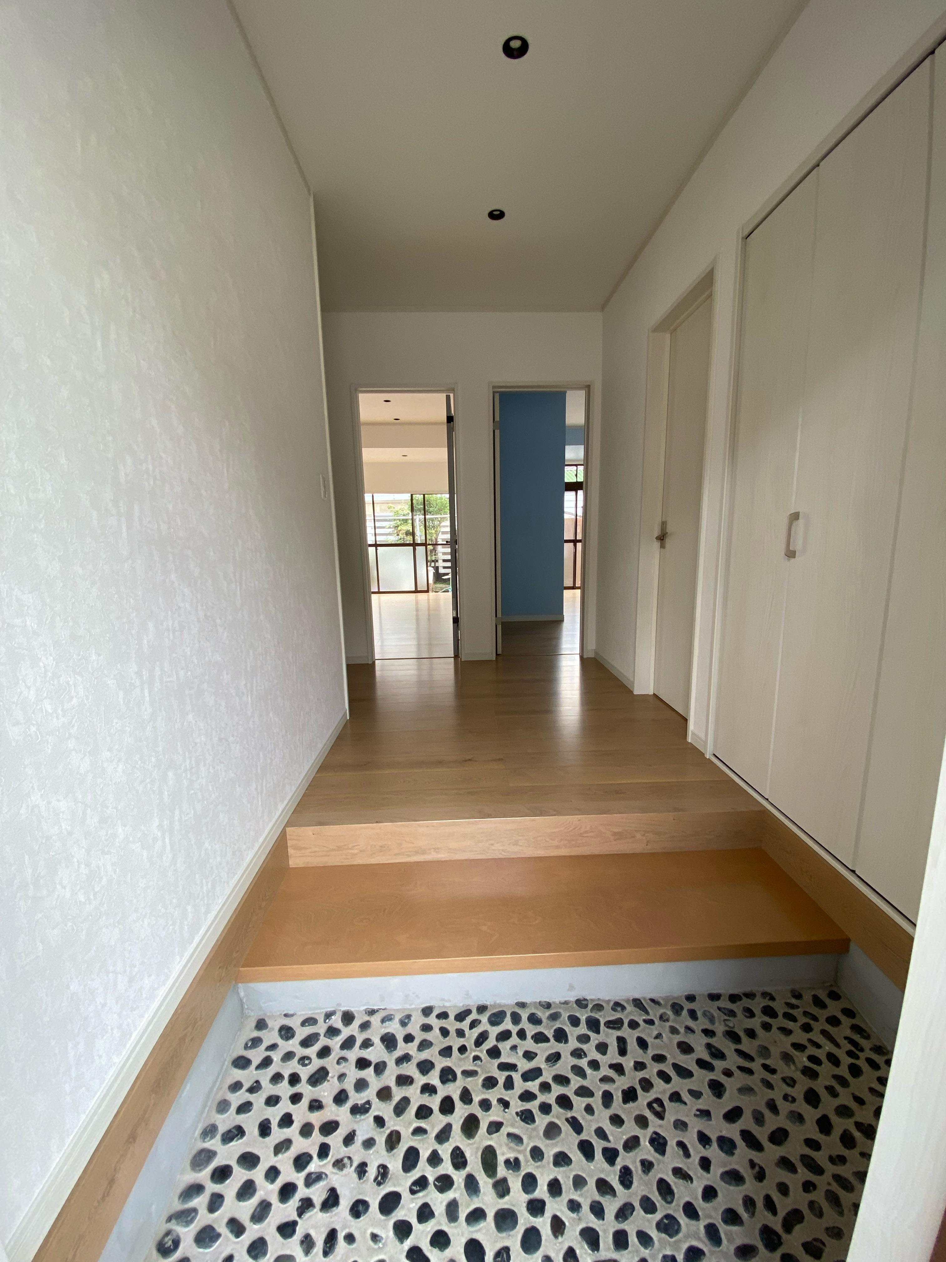 和風の玄関から、白を基調とした洋風の玄関にリフォームです。 広い収納スペースをを設置したので家族4人の靴はもちろん入ります。 いつも玄関がスッキリした状態でいられます。